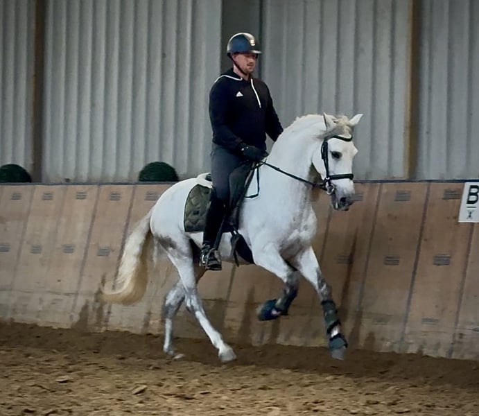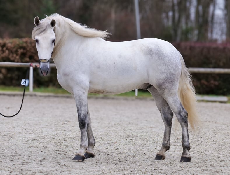 Name: Brillante LXXXI Breed: P.R.E. (Pure Spanish Horse) Gender: Gelding Date of Birth: September 2, 2019 Age: 6 years Height: 15.5 hh Color: Grey (Dapple Grey) Pedigree: with pedigree documentation Temperament: friendly and people-oriented, eager to learn, reliable, patient, curious, intelligent, brave, calm Training/Suitability: ridden, dressage, leisure riding, Baroque riding, Working Equitation Trail Experience: dependable, fearless, resilient, suitable for solo and group rides, trail-proven Health: dewormed, vaccinated, barefoot, eczema-free, teeth checked, osteopathically treated Stabling: box stall, open stable Special features: good basic gaits, stands well for farrier and loading, herd-friendly The qualities listed are based on our personal assessment and do not constitute guaranteed traits. Price: €9,900 (gross price) Have we sparked your interest? To give you a better impression of Brillante, we would be happy to send you a riding video. Of course, we are available for a detailed description of the horse, personal consultation, and to answer all your questions via phone. Please feel free to contact us anytime via WhatsApp or call us at: +49 151 19487595 Our phone hours are daily from 7:00 to 13:30 and from 20:00 onwards. We look forward to hearing from you! A clinical or radiological pre-purchase examination can be arranged with your veterinarian. Brillante can be safely and comfortably delivered to his new home. We take care of all necessary preparations and transport so that your new horse arrives stress-free, well-cared-for, insured, and in good health. Currently, we offer a carefully selected variety of horses for sale. With us, you are sure to find your dream horse. Visit us also on our homepage at: www.marvinsroyalhorses.de. Dear customers, we are happy to introduce you to our horses. You are welcome to lead, groom, saddle, longe, do groundwork, or take trial rides in the riding hall, on the arena, or in the field to get to know your new family member better. This costs €40 per horse; each additional horse €30, and the fee will be refunded upon purchase. Our address: Ferdinand Grube 50 53577 Neustadt-Wied Google Maps: marvinsroyalhorses