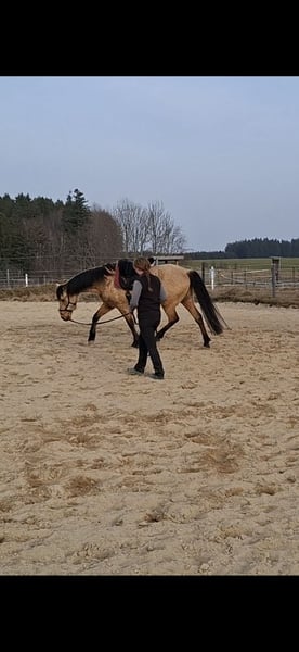 For sale is the 7-year-old PRE gelding "Camaro." He is approximately 16.1 hh, correctly built, has a very good canter, and is very people-oriented. He is well-behaved in handling, shoe- and load-in tolerant. Currently, he is barefoot. He has been in training with me for the past two months, as he previously had negative riding experiences, which caused him to become stressed when ridden. No bucking. He is a very sensitive yet somewhat dominant horse, which, combined with his past experiences, makes him unsuitable for beginners. He is now walking and trotting under saddle in the indoor arena and on the riding ground, and he is able to go out alone in the field. We are looking for an experienced, gentle rider who can work patiently and calmly with him to address his issues. Alternatively, he can remain in training for further development. Serious inquiries with a brief introduction are welcome. Viewings can be arranged by appointment (40€). Located near 87435 Kempten.