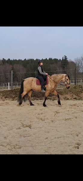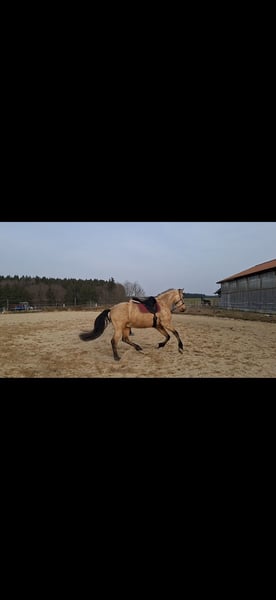 Zum Verkauf steht der 7-jährige PRE Wallach "Camaro". Er ist ca. 1,63 m groß, korrekt gebaut, hat eine sehr gute Galoppade und ist menschenbezogen. Im Umgang ist er brav, ist schmiede- und verladefromm. Derzeit ist er barhuf. Er befindet sich aktuell seit 2 Monaten bei mir in Ausbildung, da er zuvor leider schlechte Erfahrungen beim Reiten gesammelt hat und hierdurch beim Reiten unter Stress steht. KEIN Bocken. Er ist ein sehr sensibles und gleichzeitig dominantes Pferd, was ihn, gepaart mit seinen Vorerfahrungen, definitiv zu KEINEM ANFÄNGERPFERD macht. Mittlerweile geht er wieder Schritt und Trab unter dem Sattel in der Halle und auf dem Platz und geht alleine ins Gelände. Wir würden uns einen erfahrenen, feinfühligen Menschen für ihn wünschen, welcher mit Ruhe und Zeit weiterhin an seinen Themen arbeiten kann. Gerne kann er alternativ auch zur weiteren Ausbildung bleiben. Ich freue mich über ernstgemeinte Anfragen mit einer kurzen Vorstellung. Besichtigung gerne möglich nach Absprache (40€). Standort bei 87435 Kempten.