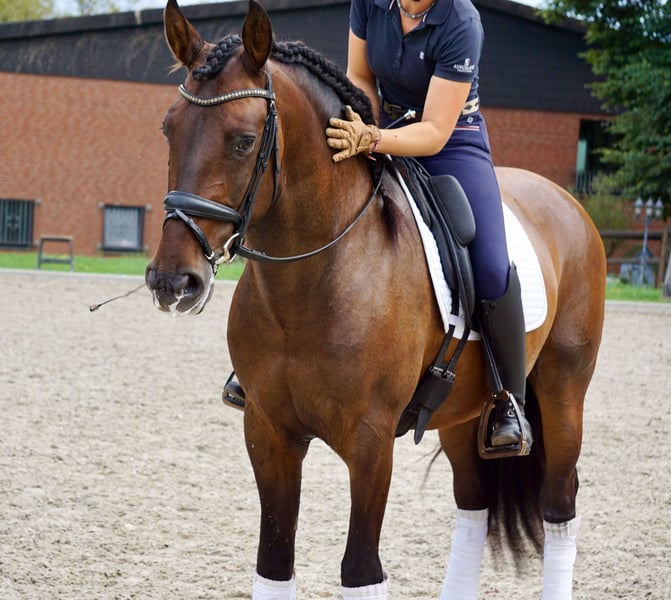 Pre-Youngster Favorito SB V – 6½ años Excepcionalmente entrenado – en Equitación de Trabajo y Doma a nivel máximo Favorito no es un caballo común, sino un compañero para jinetes que buscan algo especial. Combina belleza de estilo barroco, corazón e inteligencia con una formación que rara vez se encuentra en un caballo tan joven. 💫 Formación y talento Desarrollado en España por un entrenador de renombre internacional, que ha preparado caballos para Borcelli, Kenzie Dysli y otros jinetes de exhibición. Posteriormente, perfeccionado bajo la tutela de un maestro de doma español y actualmente en entrenamiento con la campeona alemana de Equitación de Trabajo. Domina traversales, galop externo, cambios de pie en vuelo, piruetas, piaffe y passage, y trabaja con confianza en todo tipo de trail: sobre la cuerda con una mano, abrir y cerrar puertas, garrocha, recogida en anillo, campana, círculos de galope estrechos – tranquilo, preciso y concentrado. 💖 Carácter y comportamiento Sensible, con mente clara, dispuesto y completamente orientado a las personas. Un caballo que siempre da lo mejor y confía en su jinete. Aún no es un caballo de competición, pero es un joven atleta expresivo con gran potencial para 2026. PRE-Youngster, nacido en 2019 (6½ años) aprox. 164 cm, de color castaño oscuro, estilo barroco sin herraduras, libre de eccema, buen ferrador TÜV / radiografías sin hallazgos
