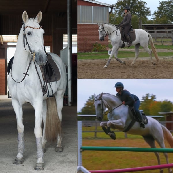 In vendita un magnifico castrone PRE, dolce, coraggioso e impavido. Possiede una potenza che diverte e si comporta in modo impeccabile in ogni situazione. Non conosce bucking, rearing o comportamenti simili. Ha 7 anni, circa 1,63 m di altezza. È entrato da poco nel mio programma di vendita (potete trovarmi su Instagram come hello_horses_official o visitare www.hello-horses.com) e si è già ambientato splendidamente. È ben montato e potrebbe rimanere volentieri per continuare la formazione. È incredibilmente talentuoso in tutte le discipline equestri. Salta come una palla di elastico, un percorso di salto A sarebbe sicuramente alla sua portata con un po' di allenamento, e grazie alle sue splendide movenze potrebbe anche fare una bella figura nella dressage classica. Grazie alla sua meravigliosa andatura di galoppo, lo vedo anche nel settore del completo. Impara velocemente, attualmente sta perfezionando le spalle in appoggio al passo e il passo spagnolo. Desidero per lui una sistemazione definitiva. Sono certo che porterà ai suoi nuovi proprietari una gioia immensa.