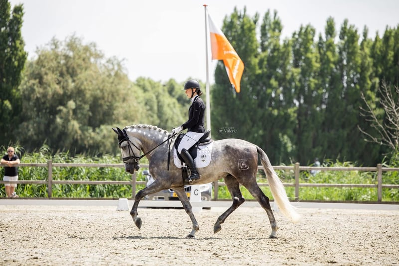 Qualified for MCI Championships and Dutch Championships ✨ A true heartbreaker with champion potential! We are currently offering an exceptional P.R.E. gelding for sale – a real gem with a promising sporting future. Age: 6.5 years Breed: P.R.E. Height: approx. 1.69 m Training level: M-level with flying changes Character: Very fine, balanced, and absolutely people-oriented Exterior: Beautiful and correctly built This charming gelding has been successfully presented at competitions by a young amateur rider. In his very first outing, he managed to stand out against strong competition and won the event. In the subsequent competition with 66 participants, he achieved an excellent 4th place, thus qualifying for: ⭐ MCI Championships ⭐ Dutch Championships (Level L1) Additionally, he placed 8th at the Dutch Championships. His quality, rideability, and remarkable development make him a truly exceptional horse – both for the ambitious competition rider and for lovers of classy Iberian horses. Pedigree – Quality that convinces Gredos de Moreta combines some of the most renowned lines of P.R.E. breeding in his pedigree and is a true example of targeted, high-quality selection. His father Datúro III (by Datil VII) comes from powerful dressage lines with great potential for modern sport. Through Sevillano XVI and Desio, his lineage features elegant and functional P.R.E. horses known for their light-footedness, ability to collect, and rideability. This paternal side brings classic type, correct foundation, and sport-oriented genetics. The maternal side – represented by Hacendosa LII – is deeply rooted in baroque, substantial bloodlines that are particularly valued for their charisma and character strength. Names like Nene XVII, Ultimado V, Hispano IV, and Lejano 1970 testify to substance, nobility, and expression. Notably, the anchoring of classic Escalera and Militar lines is emphasized, known for reliability, willingness to perform, and excellent exterior. Priced in the higher segment.