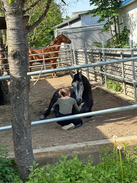 We are looking for a new home for our 8-year-old PRE gelding. Macho is an absolute sweetheart in handling. He loves being groomed and is always up for a cuddle. Under saddle, he aims to do his best and please. He is currently at A-level and is familiar with indoor arenas, riding arenas, and outdoor terrain. He also enjoys working with poles and cavaletti. One of his greatest strengths is definitely in groundwork – Spanish walk and Pi-Pa are reliably available with confident handling. In turnout, he always interacts kindly and amicably with other horses. Macho has ANCCE papers. We are happy to answer any further questions by phone. Videos can be sent upon request.