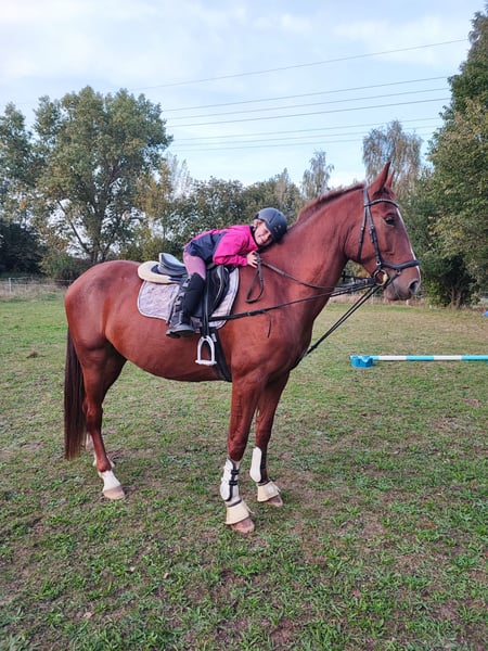 Ich suche ein neues 5* Zuhause für meinen 7 jährigen sportlichen PRE Fuchswallach. Amicello AP ist 2018 geboren und stammt aus einer liebevollen, deutschen PRE Zucht (Andalusian-Pearl/Sachsen). Er hat ein Stockmaß von 1.61m. Er besitzt volle ANCCE Papiere. Amicello ist ein Pferd mit Charakter und angenehmen Temperament deswegen möchte ich ihn nicht an reine Anfänger abgeben. Er wurde 3,5 jährig schonend angeritten und hatte immer wieder Pausen aufgrund von Wachstum und körperlicher Entwicklung. Seit knapp 5 jährig geht er wieder regelmäßig unter dem Sattel. Amicello geht brav in der Gruppe sowie auch alleine ins Gelände. Er ist in jeder Situation immer händelbar. Nie bösartig, kein Bocken oder Steigen. Amicello steht bei mir in einer kleinen Herde im Sommer auf 24/7 Weide und im Winter tagsüber auf dem Paddock und nachts in der Box. Offenstallhaltung kennt er auch. Er ist in der Herde eher ranghoch. Er hat momentan eine Reitbeteiligung (16 Jahre) die ihn 1x die Woche im Reitunterricht reitet oder vom Boden aus arbeitet. Auch meine Tochter (9) kann ihn schon gut alleine im Schritt/Trab auf dem Platz reiten, er ist dabei immer artig. Amicello geht unter dem Sattel brav alle 3 GGA, wobei ihm der Galopp noch etwas schwer fällt. Er zeigt sich immer stets bemüht beim reiten und ist sehr lernwillig. Er wurde hauptsächlich dressurmäßig gearbeitet, kennt Freispringen, Bodenarbeit und Doppellonge. Wir waren schon auf einigen Auswärtstrainings und Lehrgängen, wo er trotz fremder Umgebung und Aufregung immer cool geblieben ist. 2025 war er auch das erste Mal beim traditionellen Osterreiten dabei und hat es mit Bravour gemeistert. Ich suche für ihn DEN Menschen, der ihn genauso liebt und ihm ein 5* Zuhause schenkt. Kein Notverkauf, Platz vor Preis! Inkl. angepassten Prestige Top Dressage Dressursattel in Größe 17 Zoll. Weiteres Zubehör kann gegen Aufpreis dazu erworben werden (Decken, Schabracken, Gamaschen ect.) Ein Probe reiten gegen eine Gebühr von 30€ ist jederzeit möglich, diese werden dann bei Verkauf verrechnet um Reit-Tourismus vorzubeugen! Keine Händler. Keine Schulbetriebe.