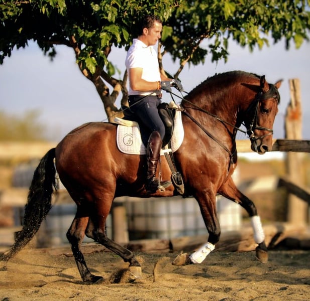 Amapolo... le partenaire parfait pour la dressage pour le cavalier de loisir exigeant, cherche à trouver son FOYER POUR LA VIE 🥰🏡 Ce magnifique et élégant PRE gelding est né en 2018, mesure 1,62 m et provient d’un élevage privé attentionné. Il se distingue par son tempérament agréable, sa excellente attitude au travail, sa grande capacité d’apprentissage et sa volonté d’apprendre. Ce beau gentleman est idéal pour les amateurs de dressage à la recherche d’un partenaire fiable et talentueux. Ses mouvements sont souples et expressifs, parfaits pour le cavalier ambitieux souhaitant perfectionner ses compétences. Amapolo est en bonne santé, régulièrement vacciné, vermifugé et présenté chez le maréchal-ferrant. Il se montre amical et proche de l’humain dans ses interactions, ce qui en fait un compagnon agréable pour le travail quotidien. Il possède une apparence très baroque et une ligne de cou impressionnante. Ses mouvements sont calmes, souples et parfaitement rythmés. Il maîtrise les exercices de niveau L et M. Des changements de pied volants ont été initiés, mais nécessitent encore un peu plus de pratique. Si ce magnifique cœur à prendre vous séduit, merci de me contacter avec votre numéro de téléphone afin que je puisse vous joindre rapidement. Je reste à votre disposition pour toute information complémentaire. Visite et essais possibles sur rendez-vous. Nous disposons toujours d’une petite sélection de chevaux espagnols issus d’élevages privés de grande qualité, élevés avec soin et amour. Nous aidons volontiers pour le transport, où que ce soit.