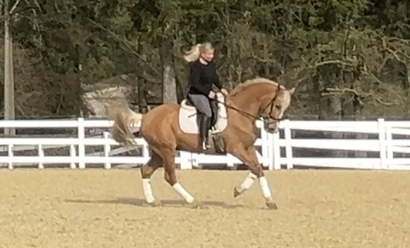 Siroco is very people-oriented, affectionate, curious, open-minded, and always well-behaved. Under saddle, he is very comfortable to sit on, displays nice basic gaits, and is consistently motivated. He is turned out daily in the pasture, and is accustomed to being tied, hosed off, using the solarium, traveling in the trailer, lunging, and working in the indoor arena, outdoor riding arena, and on trails. Training level L/M – lateral movements at trot and canter are secure, and flying changes are in training. A pre-purchase examination including X-rays (all negative) is available. A viewing can be scheduled at any time; weekdays from 12 noon are also possible.