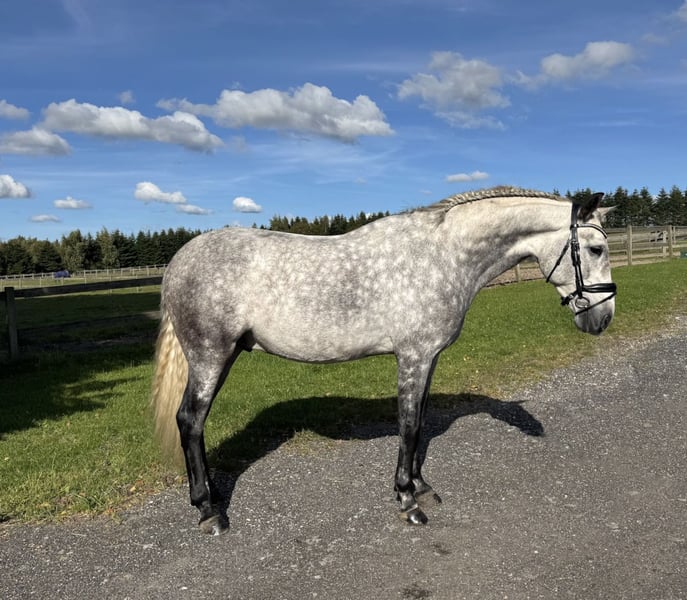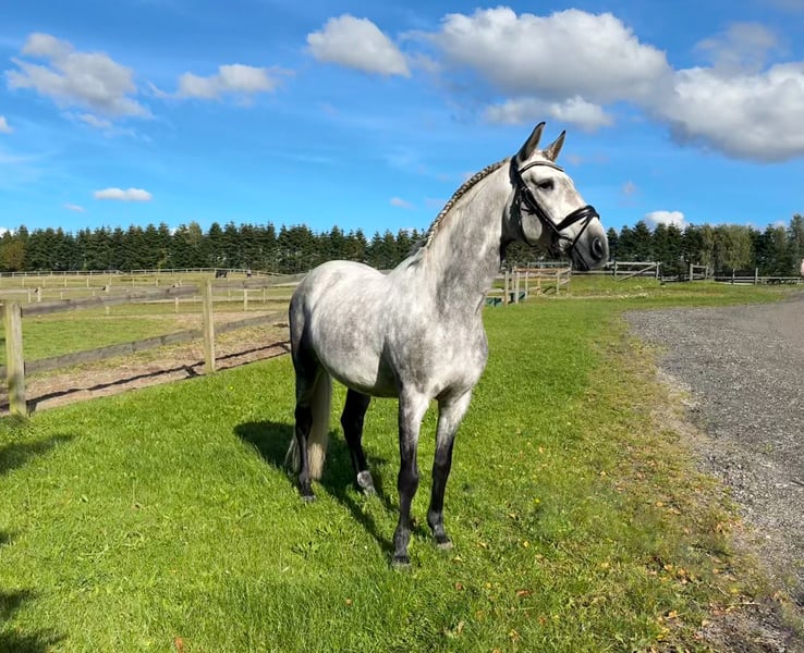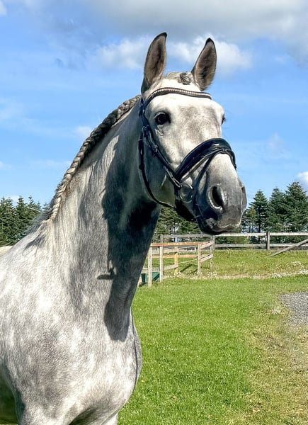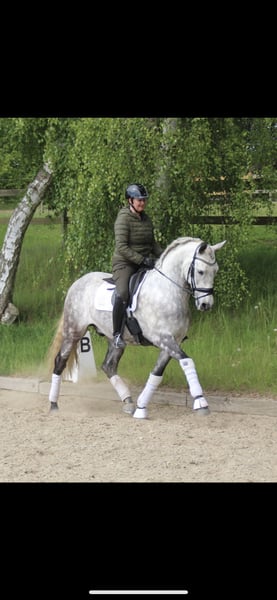 Elegido is super rideable and moves very well in all three gates, especially his canter is big, self caring and uphill. Always tries his best, and also loves to hack out, and jump small fences. Very easy to load, and don’t have any stable issues. He has a top pedigree, and is very talented for all the collected work. All in all a very exciting horse for the future.