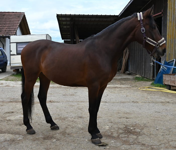Un bellissimo stallone PRE di 8 anni. Situato a Häuslenen 8522 Menzi è un stallone PRE di 8 anni, con un'altezza di circa 155 cm. È molto affettuoso e coccolone. Non presenta difetti come bock o scalciare. Può essere tenuto sia in paddock aperto che in box. Attualmente condivide il pascolo con un pony. Menzi è in ottima salute. Ha un po' di possessività verso il cibo. Conosce mucche, alpaca, cani, gatti, capre e altri animali. È anche abituato alle macchine agricole. + È facile da maneggiare e da caricare in trailer + Nessun problema di scalciare o scalciare + Conosce tutte le andature fondamentali + Sa saltare circa 30 cm, ma lo vedo più orientato al dressage + Si muove bene sia da solo che in gruppo in passeggiata in campagna + Ama essere coccolato e accarezzato Per ulteriori domande, contattami in privato.
