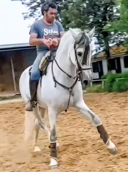 Sein Galopp ist super bergauf gesprungen,und seine Ausbildung,kann sich sehen lassen.