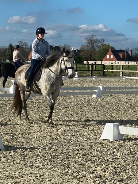 PRE gelding 8 years old, +1.65, gray with ANCCE paper Must sell! Make offer! Saddled, but no rider now. Is very energetic, needs a lot of exercise 5* home🏠 wanted for my sweet 8 year old gelding With great pain in my heart I decided to offer my best friend for sale due to circumstances and my studies. He deserves a new owner who has optimal time for him and can also work with him a lot because he really needs that and enjoys it a lot. 🐴He is a handsome gray PRE, nice for a recreational rider 📏He is +1m65 tall ❣️Date of birth: 14/09/2016 He is good with other horses, a very social horse 🐴 Is very energetic, needs a lot of exercise, you can also notice this in the handling so not suitable for beginners. He actually only goes to a 5* home, not to traders or a riding school. If seriously interested, please contact the number: "0468336836" on whats app for more information. Horse is stabled in Dentergem (Belgium)