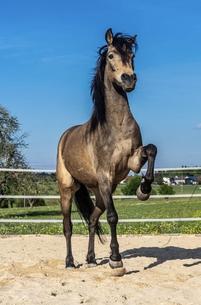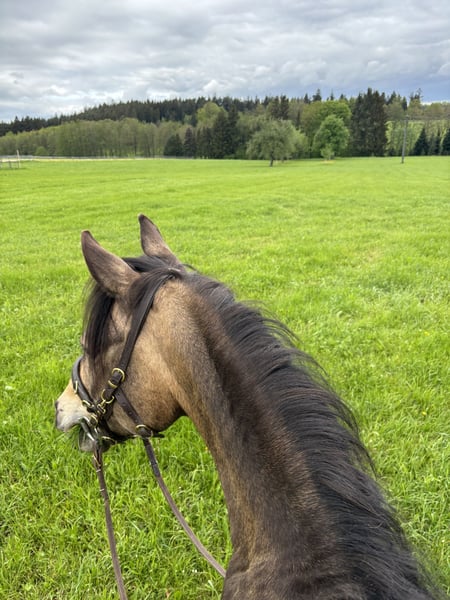 Schweren Herzens suche ich für meinen 12-jährigen Quarab Wallach ein passendes, erfahrenes Zuhause. Er ist 1,45m groß und daher kein Gewichtsträger (max 70kg). Ich habe ihn als Jährling gekauft und ihn 5-jährig schonend angeritten. Er ist ein sehr intelligentes, sensibles Pferd, das mit großer Freude lernt und besonders in der Bodenarbeit sowie in der Freiarbeit aufgeht. Er beherrscht zahlreiche Lektionen wie Schulterherein, Travers, Revers, Plié, den spanischen Schritt sowie erste Ansätze der Piaffe. Auch die Freiarbeit und Zirzensik machen ihm große Freude und gehören zu seinen Stärken. Unter dem Sattel zeigt er sich auf dem Platz eher ruhig und bemüht, alles korrekt umzusetzen. Im Gelände hingegen blüht er richtig auf und zeigt deutlich mehr Motivation und Freude an der Arbeit. Sein kluger Kopf ist Fluch und Segen zugleich: Er lernt sehr schnell – sowohl Gewünschtes als auch Ungünstiges. Daher benötigt er eine klare, ruhige und konsequente Führung durch eine erfahrene Person. Er hat eine ausgeprägte Persönlichkeit, steht täglich für sich ein und kann in seinen Reaktionen impulsiv sein. Dies kann sich in seltenen Situationen durch Losreißen (teilweise mit Erfolg), Steigen, Wegdrehen oder Drohverhalten äußern. Gesundheitlich ist er leichtfuttrig und benötigt ein angepasstes Futtermanagement mit begrenztem Zugang zu Heu und Weide. Mit vier Jahren hatte er einen leichten Reheschub; Röntgenbilder sind vorhanden, es kam dabei zu keiner Rotation oder Absenkung. Zudem hat er sehr empfindliche Haut und wird im Sommer mit Fliegendecke geschützt. Aufgrund seiner hohen Körperspannung benötigt er im Winter ebenfalls eine Decke, um die Rückenmuskulatur warm zu halten. Ich wünsche mir für ihn ein Zuhause in Offenstallhaltung bei Menschen, die seine besondere Art zu schätzen wissen und ihm mit Ruhe, Klarheit und Erfahrung begegnen können. Für den richtigen Menschen ist er ein unglaublich spannender Partner mit viel Potenzial und Ausdruck. Ein passender Vollmaßsattel ist vorhanden und kann bei Interesse gerne miterworben werden. Selbstverständlich werden alle 6 Wochen die Hufe bearbeitet (er läuft barhuf und im Gelände mit Hufschuhe), Zähne werden jährlich kontrolliert, regelmäßige Kontrolle durch Osteo, Physio und Sattlerin. Der Preis ist verhandelbar. Ein gutes Zuhause wäre mir viel wichtiger. Bei Fragen meldet euch gerne bei mir.