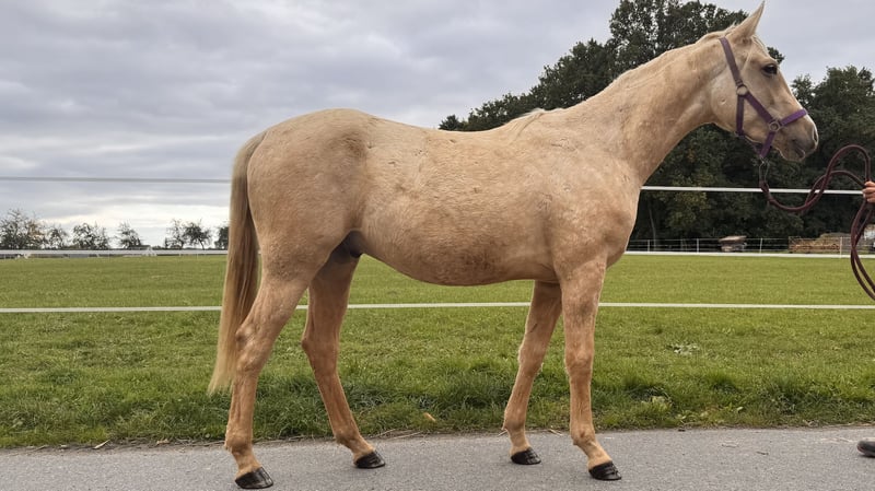 Na sprzedaż: Dwuletni wałach palomino rasy Quarab – Poco Posiadam na sprzedaż pięknego dwuletniego wałacha palomino rasy Quarab, którego imię to Poco. Koń posiada certyfikat AICQA, co potwierdza jego doskonałe pochodzenie i zdrowie. Poco jest regularnie szczepiony, odrobaczany oraz werkowany, co zapewnia jego dobre samopoczucie i kondycję. Wychowany w stadzie wolnowybiegowym nie kopie,nie gryzie. Niedawno rozpoczął pracę z siodłem, co czyni go idealnym kandydatem do dalszego szkolenia. Jest bardzo towarzyski lubi przebywać z ludźmi. Dla zainteresowanych chętnie udzielę dodatkowych informacji telefonicznie lub w wiadomości.
