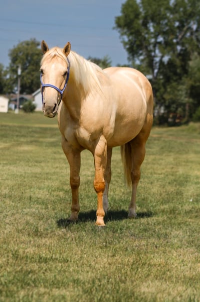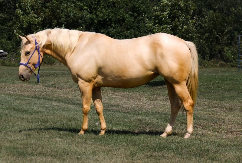 🍁𝒕𝒉𝒆 𝐅𝐀𝐋𝐋 𝑺𝒑𝒆𝒄𝒕𝒂𝒄𝒖𝒍𝒂𝒓🍁 Happening now thru MONDAY | SEPTEMBER 22nd - Available EXCLUSIVELY on HorseBid's website! For more details and to register visit: www.Horsebid.com CONSIGNOR CONTACT: Triple B Horses 641-680-1707 LOCATION: Plano, Iowa BREED: Quarter Pony REGISTERED: No COLOR: Palomino HEIGHT: 14.1 AGE: 10 GENDER: Mare Dolly is a gorgeous palomino mare standing the perfect height of 14.1 hands and built to carry ALL size riders! Needing something short yet stocky- Dolly is your gal! No mounting block needed, but don’t worry she will stand next to one for easy mounting if needed! Dolly is easy to catch, gets along well with other horses, stands tied, loads easy, good for the farrier, and good for the vet. She is sweet but respectful on the ground. She tacks up with no issues, leave her sit for months on end and you can pull her from the pasture saddle up and go- no lunging needed. She has an easy one hand neck rein making her the perfect pick to have a drink in one hand and steer with the other. She will walk, trot, lope with ease. She is very smooth and has never offered to buck, bite, kick, or rear. Dolly has seen all the sights in town and at the camp grounds. Nothing phases this girl! Our town has their fall festival fair set up and she rode through all the rides like she had seen them a million times. We even stopped at the local bar for some good and she waited patiently outside tied to the stop sign. While Dolly does ride super well in the arena she is the BEST trail horse. Slippery mud? No problem. Steep ditches? That’s a breeze. Big logs? She’s got it. This girl is as sure footed and trustworthy as you can get. We have throughly enjoyed having Dolly around and can not wait to see her next family enjoy her as much as we have! The limitations to this mare are endless. Take her jumping, fun shows, 4H, trails, junior rodeos, flags. She is willing for any task you give her! Dolly is 100% sound and current on all cares. Please call or text for any questions you may have! I would love to talk about her and find her a forever family!