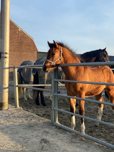 Mooi veulen te koop. Geboren op 18-07-2026. Staat momenteel nog bij de merrie, maar wordt binnenkort afgespeend. Het is een leuke, lieve merrie met karakter. Loopt goed aan het halster, hoefjes uitkrabben en durft veel. Voor verdere vragen hoor ik het graag! :)