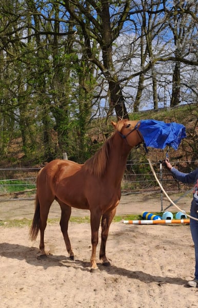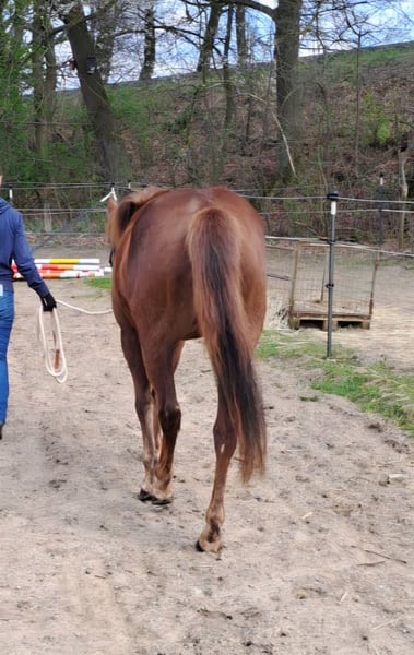 Diese tolle Quarter Pony Stute aus 2023, eingetragen beim ZSSE sucht ein neues, förderndes zu Hause. Stockmaß ~150cm. Ihr Vater ist Playing with badger, der 2025 auf der German Open unter den top 25 im Ranch riding landete. Ihre Mutter (Quarter x Haflinger) ist erfolgreich in der Distanz bis 60km, stets mit bestem Vet-Check. Diese junge, gesunde Stute bringt alles mit, was man sich von einem Ranch-Horse oder Reiningpartner wünscht. Sie verfügt über eine hervorragende Auffassungsgabe, ist nervenstark und zeigt will to please. Sie ist vom Boden gearbeitet. Bei der Freiarbeit zeigt sich ihr Talent: sehr Wendig, schnelle Reaktion, gute Kooperation. Das Satteln kennt sie bereits und zeigte hier keine Auffälligkeiten. Ein Kind saß bereits am Anbinder drauf, auch das verlief unspektakulär. Typisch Ranchhorse mag sie Routinen und hat gerne klare Aufgaben. Neuen Dingen begegnet sie wach, aber sehr kontrolliert und immer gut händelbar. Den Hof verlässt sie auch ohne Pferdegesellschaft ohne Probleme. Sie ist selbstverständlich regelmäßig dem Schmied vorgestellt und läuft barhuf, wobei zu betonen ist, dass sie über eine hervorragende Hufqualität verfügt. Außerdem ist sie geimpft, entwurmt und die Zähne wurden halbjährlich kontrolliert. Generell ist sie im Umgang mit Kindern brav, aber aufgrund des Alters nicht als Kinderpony geeignet. Zusammenfassend: Sie ist das Pferd, das in Zukunft und nach weiterer Ausbildung alles mitmachen wird. Ich wünsche mir für sie jemanden der ihr Talent fördert. Sie kennt Box und Offenstall, zeigt sich in der Herde ranghoch. Menschen begegnet sie freundlich und kooperativ, versucht es immer richtig zu machen. Eine AKU kann auf Wunsch veranlasst werden. Aufgrund persönlicher Veränderungen zum fairen Preis verhandelbar, wenn der Platz passt. Es handelt sich um einen Privatverkauf. Weitere Infos gerne auch telefonisch, nach kurzem Schriftverkehr.