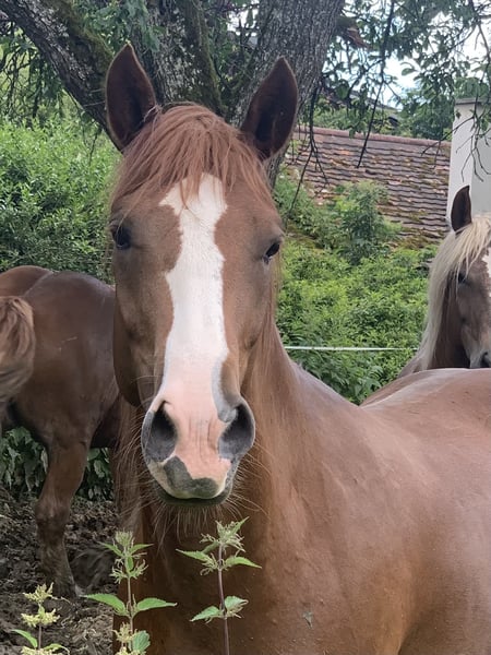 Cherry est née chez nous, sur le Brennesselhof - Bodensee.de. Elle a maintenant cinq ans et est prête à être formée dans toutes les disciplines. À l'origine, nous avions prévu de l'éduquer nous-mêmes pour qu'elle devienne la monture de notre plus jeune, mais malheureusement, il a perdu tout intérêt. Elle est encore au stade de jeune cheval, mais elle a déjà vécu bien plus que la plupart des poulains de pâture. Nous l'avons souvent monté, et elle a également participé à des sorties en voiture, ce qui lui a permis de voir beaucoup de choses. Sa mère est une jument de race Welsh-C mesurant 148 cm, originaire du Pays de Galles, que vous pouvez rencontrer ici. La maman a été monté en concours de saut d'obstacles chez son ancien propriétaire, et nous la montons en loisir, notamment en équitation western, et elle est également attelée. Le père est un étalon Paint, inscrit au stud-book. Il vit à environ 30 minutes, près d'ici, et peut être visité si souhaité. Cherry est extrêmement curieuse, proche de l'humain, volontaire, joyeuse, affectueuse et câline. Elle est, selon son âge, un peu turbulente, mais après une première phase d’énergie, elle devient rapidement sage et claire d’esprit. Jusqu’à présent, elle n’a connu que le travail en liberté et a souvent été manipulée à la main. Je peux tout à fait l’imaginer en cheval western, elle possède toutes les qualités et l’apparence pour cela, mais une formation à l’anglaise serait également envisageable. Elle atteindra sa taille adulte dans un an, estimée à environ 56-58 cm. Elle développe actuellement une « quarte arrière » :) et devient plus musclée. Elle n’a jamais été malade. Elle a des petits sabots durs et ronds, des jambes solides, des allures agréables avec une bonne impulsion et une arrière-main bien engagée. C’est un petit cheval en bonne santé, élevé en compagnie de poulains (avec deux foals de trait nordique) et en troupeau. Elle est ferrée et se laisse charger facilement. Jusqu’à présent, elle n’a pas eu de mauvaises expériences et possède une grande confiance envers l’humain. Nous souhaitons pour elle un cavalier ou une cavalière ambitieux(se), qui prendra plaisir à l’éduquer patiemment. La pension en paddock avec compagnie est une condition essentielle. Nous serions ravis de recevoir une candidature détaillée, expliquant comment Cherry pourrait évoluer chez vous et quels sont vos projets avec elle. Elle peut être visitée à tout moment. PLACE AU PRIX :)