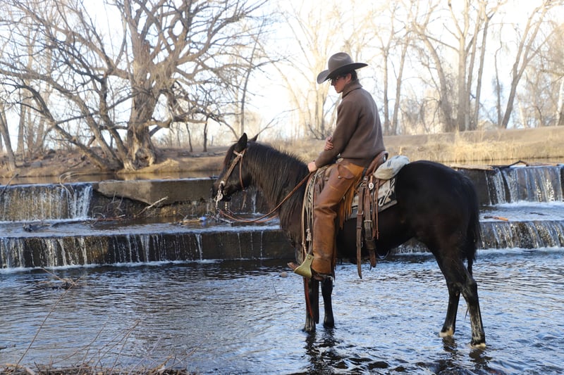 "AVAILABLE ON ONLINE HORSE AUCTION AT www DOT MagicHorseAuction DOT com BIDDING OPEN NOW thru TUESDAY | MARCH 3RD! BUY IT NOW AVAILABLE! *Final price will be determined on auction site* CONSIGNOR CONTACT INFO:Oly Edmiston #970-556-4820 LOCATION: COLORADO" Midnight is a good natured blue roan quarter pony mare. At nine years old, she is prime age. She has been a favorite here on our ranch, calving and moving cows. She is a quiet and confident trail partner in the mountains and on municipal trails. Midnight is smooth in all her gaits and happy to lead, follow, or be anywhere in between on the trail. She rides out alone on the trail or checking cows, and has done so with each of our older kids aged 9, 12, and 14. Midnight has drug calves at brandings and roped calves for tagging and doctoring. She has also head and heeled yearlings. Midnight is in on consignment with us. Her owners are selling her to cover medical bills. They said that midnight is a very fine buggy mare and good to drive anywhere. We have not had the occasion to hitch her but may have video before the sale is over (weather permitting). Midnight gets along well in the herd and is vet and farrier approved. She loads and hauls well, and backs out of the trailer. Shipping is available. Call for more information or to set up a time to meet her at home near Nunn, CO. 970-556-4820