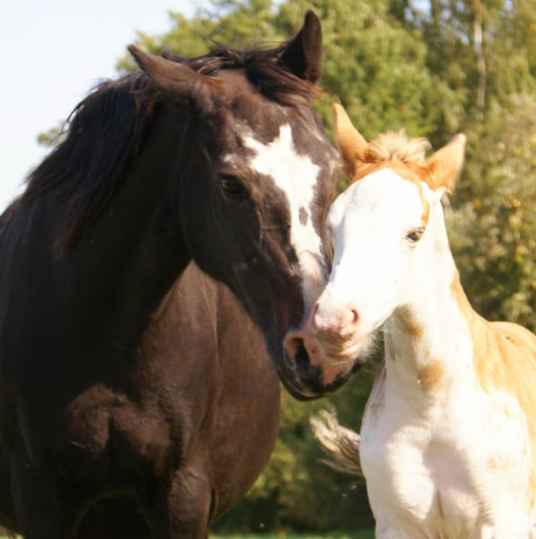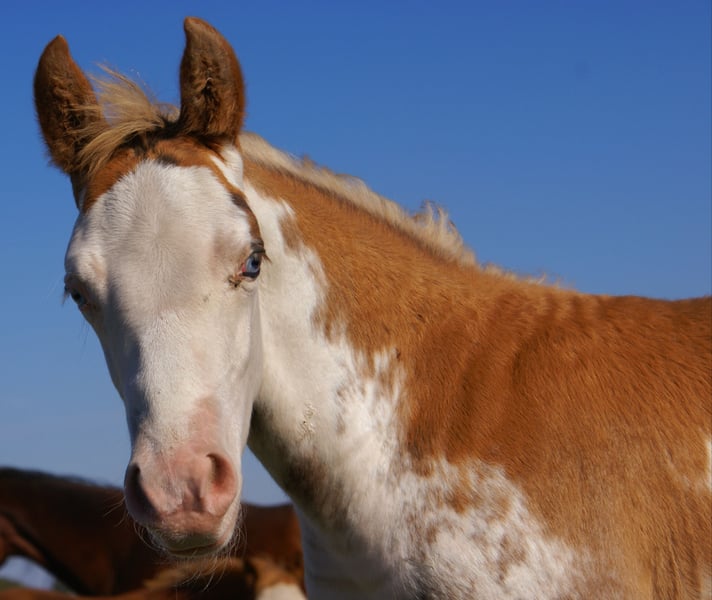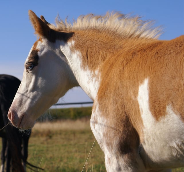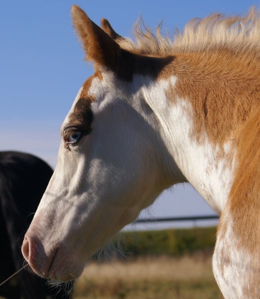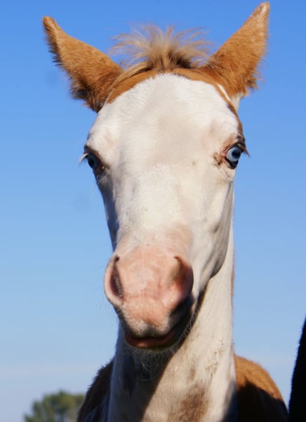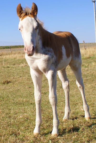 W wyróżniającej się kasztanowej maści overo prezentuje się ta źrebak ogier z 2 niebieskimi oczami, ojciec: Paint, matka: Niemiecki koń sportowy, źrebak ma pełne papiery, jest żywotny, radosny, wyjątkowy.