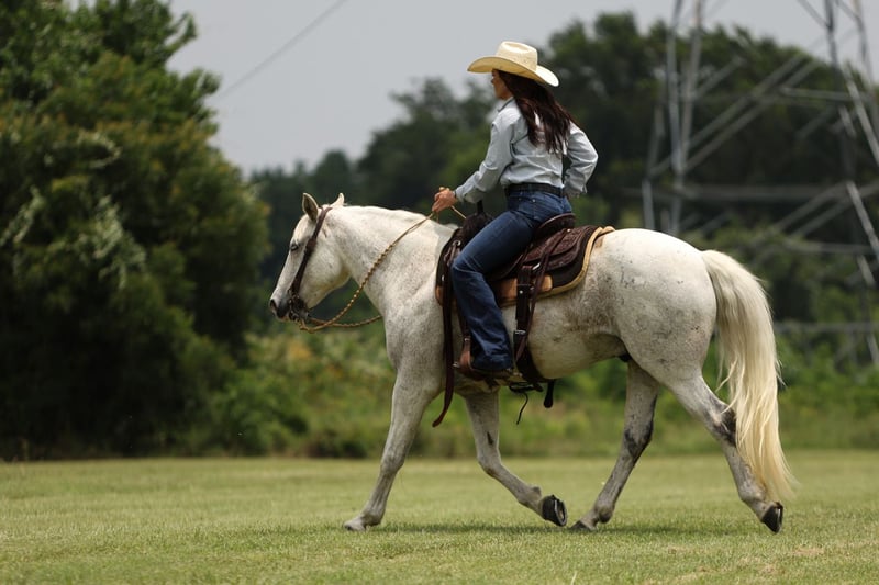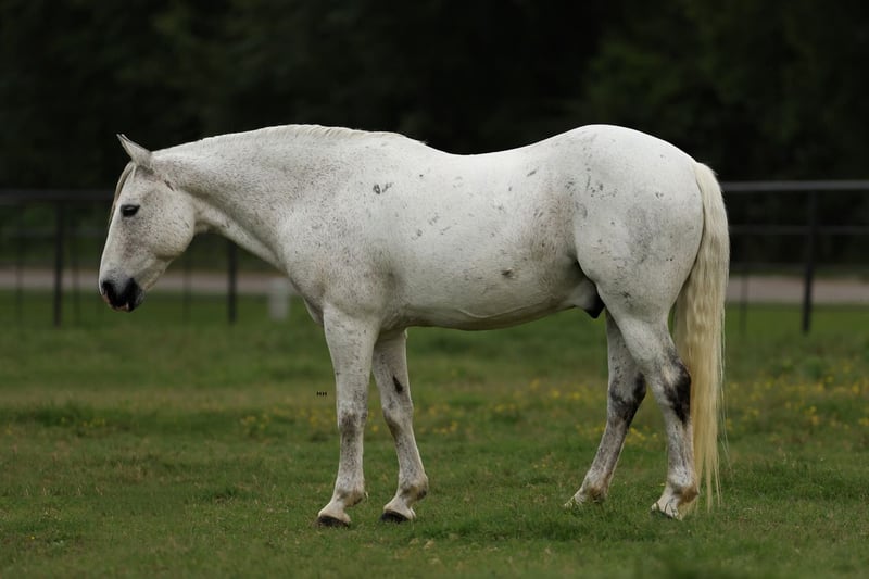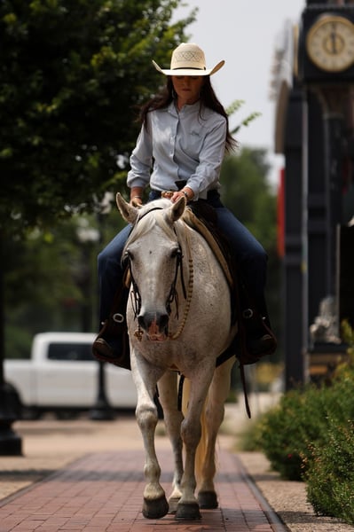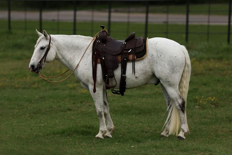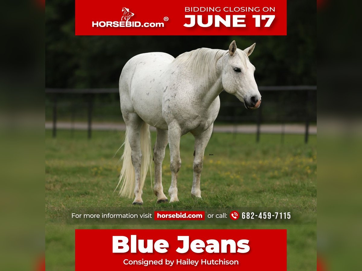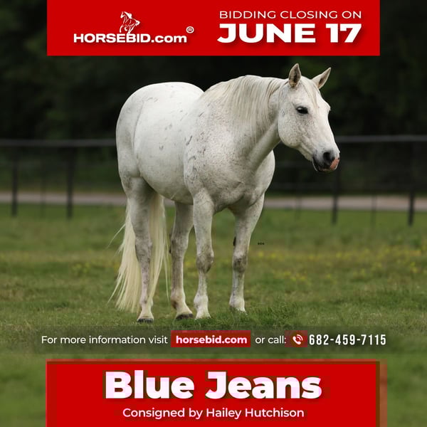 ♠️ The RIDER's Choice ♠️ Happening now thru MONDAY | JUNE 17th - Available EXCLUSIVELY on HorseBid's website! For more details and to register visit: www.Horsebid.com CONSIGNOR CONTACT: Hailey Hutchison 682-459-7115 LOCATION: Joshua, TX BREED: Quarter Pony REGISTERED: No COLOR: Grey HEIGHT: 14 AGE: 12 GENDER: Gelding Blue Jeans is a 12 year old, handsome grey quarter pony, sweet personality, and a big kind eye! Standing 14 hands tall making him the perfect size for adults or the kids. Trails to the ranch he can do it all with ease! Easy to catch, good ground manners, stands to be groomed, tacked up, and bathed. Super simple point and go type of ride. Blue jeans is gentle, laid back, and goes desired speed of his rider. WTL circles in the arena, picks up both leads, and a good stop. Neck reins or direct reins. Smooth running walk, and a comfortable short lope. Used extensively in the feed yard for the past serval years. Also done all aspect of ranch work- Ship, sort, and load cattle. Rides great outside, sure footed down rocky trails, and crosses right over the water. Crack a bull whip, carry a flag, drag a log, or cross a tarp he isn’t bothered by any of it! Sells 100% sound, up to date on coggins, dental, and farrier work.
