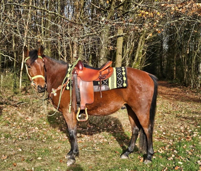Quarter-Mix Gelding "Shorty" – young, friendly, and full of potential Details: • Name: Shorty • Breed: Quarter-Mix • Gender: Gelding • Age: 3.5 years • Height: approx. 14.3 hh • Training level: Saddled and lunged • Price: €5,800 For sale is this charming Quarter-Mix gelding, "Shorty," a young, talented horse with an excellent character and an open, people-oriented nature. 🐴 Shorty is: – very friendly and affectionate in handling – well-behaved, curious, and eager to learn – calm and composed – familiar with children, farm machinery, and rural life – cooperative, motivated, and focused during lunging and groundwork – remains cool and attentive in new situations – looking for a person who enjoys further developing him and growing together With his balanced, trusting nature and clear mind, Shorty has excellent prospects of becoming a reliable leisure partner—whether for Western riding, general riding, or groundwork. 🐎 Perfect for: Riders with patience and sensitivity who enjoy training a young horse and building a true partnership. Our horses: – regularly dewormed – attended to by farrier and osteopath 🛍 Farm shop: Western saddles, bridles, accessories 🚛 Transport & equipment organized affordably upon request ✅ Our services: – 3-month exchange guarantee – Trial ride: €35; each additional horse €25 (credited on purchase the same day) – €100 immediate discount for pickup/transport on the same day – Personal and honest advice 📞 Please inquire only by phone: 0171 – 4001968 🕗 Available daily: 8 a.m. – 8 p.m. ⚠️ No emails or WhatsApp messages ⚠️ All information provided without guarantee