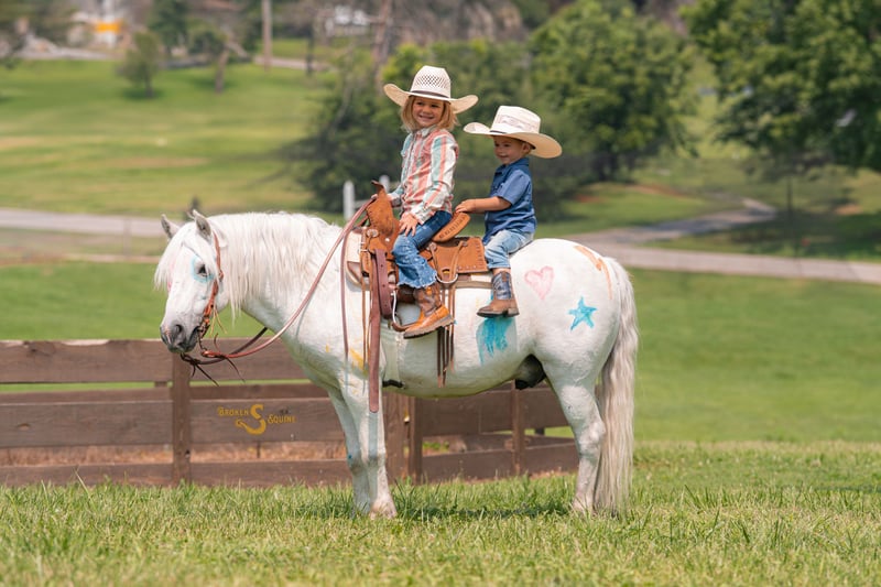 🍂 𝓐𝓾𝓽𝓾𝓶𝓷 𝑨𝑳𝑳 𝑺𝑻𝑨𝑹 𝑳𝑰𝑵𝑬𝑼𝑷 🍂 Happening now thru MONDAY | OCTOBER 6th - Available EXCLUSIVELY on HorseBid's website! For more details and to register visit: www.Horsebid.com CONSIGNOR CONTACT: Broken S Equine Kieran 908-645-2127 or Beau 573-303-4087 LOCATION: Bogard, MO BREED: Welsh x Quarter Pony REGISTERED: No COLOR: Grey HEIGHT: 11.3 AGE: 7 GENDER: Gelding Pillsbury is a 7 year old Welsh x Quarter Pony gelding standing a stout and sturdy 11.3 hands high. This pony is the highlight of the year, and not a day has gone by where we didn’t debate on hanging onto him for the kids to keep. He is a chunky, snuggly, smart little guy that is as reliable as the day is long. He hasn’t blinked an eye, or put a foot wrong with everything we have done with him. The kids rode him double, bareback, into town, and driven him through the drive through for lunch! He jumps like he’s heading to pony finals, and is a total superstar on the cross country course. He’s pushed cows, ponied the minis on trail rides with the smallest kids on board, gone to pony camp, been dressed up as a unicorn, had guns shot off his back, and created so many unforgettable memories for our kids and their friends. He makes you wish you were a kid again so that you could hop on and join in on the fun. Even from the sidelines, Pillsbury will make your heart full seeing just how happy he makes every one of his little riders. Where hasn’t this pony gone? From going on rides to the park, standing patiently at the playground while the kids play, to riding to Sonic for a slushee afterwards, Pillsbury is truly up for any adventure. He was piloted by an almost 4 and 2 year old, straight into Tractor Supply and rode around to buy a bag of pony treats. If riding him around town isn’t your style, he’s great on the ranch too. Born and raised out west, Pillsbury is no stranger to making himself useful. He will trot along with the big horses to check fence, and stand patiently with the kids on his back while the adults doctor calves and work. If you come by our farm in the evenings you’ll probably see him bareback in a halter in the pasture with a kid or two on his back riding around doing whatever is asked of him. He has been a huge confidence builder for the girls who were just starting out over jumps. From hunt country, to the cross country field, or just cross rails in the arena, he will help build confidence and your kids riding skills with every fence! Pillsbury is a little trail master. He crosses water, will climb up banks, jump ditches, and has even seen the cross country course! He’s an asset to a parent that needs a babysitter they can trust to keep the kids safe on the ranch, and cleans up nice to look like a little show pony when he’s in English tack! He has a nice stop, easy steering, and a super duper cute trot! Pop him over the jumps on the cross country field, or on hunter paces. He’s even been around hounds, so with his brains and quiet mind - he would make a fantastic hunt pony too! In the barn, you’ll most likely see Pillsbury being groomed, braided, and maybe even being finger painted. He’s no stranger to getting a unicorn horn tied to his bridle and playing princess as well. He stands there all day like a saint, and soaks in all the attention. Pillsbury is a good boy for all the normal barn tasks, and is an easy keeper. He lives out in a mixed herd, gets along well with others, and has no vices or maintenance. Ride him 3 times a day or once a month and he’ll be the same steady pony as always. ⚫️Pillsbury is an easy keeper that requires no maintenance. We have a recent, clean vet check on file. ⚫️Our program aims to train and produce top quality horses and ponies for all disciplines and experience levels. Check out our website for testimonials! ⚫️We are located in Bogard, MO. We can help you arrange shipping anywhere! ⚫️For more information about Pillsbury, or any of our other horses call or text us. Kieran 908-645-2127 Beau 573-303-4087