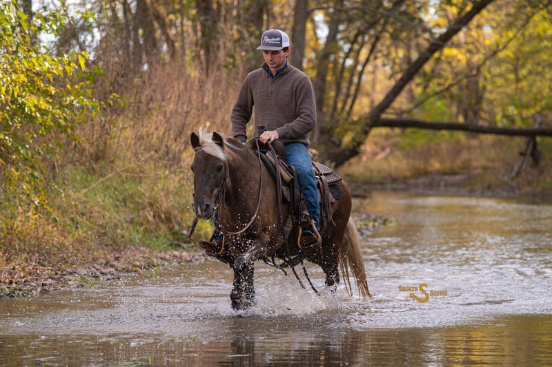 🎲𝓽𝓱𝓮 𝐑𝐈𝐃𝐄𝐑'𝐒 𝓒𝓱𝓸𝓲𝓬𝓮🎲 Happening now thru MONDAY | NOVEMBER 17th - Available EXCLUSIVELY on HorseBid's website! For more details and to register visit: www.Horsebid.com CONSIGNOR CONTACT: Broken S Equine Kieran 908-645-2127 or Beau 573-303-4087 LOCATION: Bogard, MO BREED: Quarter Pony REGISTERED: No COLOR: Chocolate Palomino HEIGHT: 13.2 AGE: 7 GENDER: Gelding 𝐎𝐧𝐞 𝐏𝐨𝐧𝐲, 𝐄𝐯𝐞𝐫𝐲 𝐀𝐝𝐯𝐞𝐧𝐭𝐮𝐫𝐞 Snackpack is a 7 year old Quarter Pony gelding standing 13.2 hands high. Looking for the pony that your kid won't outgrow in 6 months because they "Don't want to ride western anymore" and now it's "all about the jumpers"? Snackpack is an all in one, fun and useful for kids and adults alike. When you imagine the game little ponies hunting alongside the big horses in the Irish countryside, this is the pony you picture. He is the pony version of a 4-wheeler. He tackles any terrain, jumps all the jumps, and can keep up with the big dogs, all with a good head on his shoulders. He is the perfect choice for a keen kid, or smaller adult that wants to be able to do all of the things, while staying close to the ground. When I was a kid I wished and wished for a pony like this! He is the perfect gaming, playday, or gymkhana mount. Take him to the rodeo and do the games and speed events Friday night, and clean up to hunt Saturday. Snackpack is game for absolutely anything you can dream up. He would love the pony eventing job, being a hunt pony, or doing what he does here - which is a little of everything! If you (or your kid) can't decide if they want to be a cowgirl, an eventer, a trick rider, or the next pony jumper champion-- Good news! You won't need to buy 3 different ponies, Snackpack will do all the things, and look good doing it. Is Snackpack the pony for your timid kid just learning to trot or fresh off the lead line? Probably not. Though he has absolutely led our little ones around on the lead and lunge line, Snackpack is more of a "Lets do all the things" instead of a "let's walk in a circle". He is the one stop shop for the rider who thinks, "I wanna try that!" He is not for a total beginner, but he is perfect for someone who can already ride a bit, and wants to enjoy a versatile and game pony. He has three very smooth gaits, a super jump, and tons of miles outside of the ring on all terrain. He has pushed cows, camped, and gone on hunter paces. He is not speedy or hot, but he is not a dead head. He goes when asked, and slows down or stops when you ask as well - giving him the perfect amount of motor to hunt, event, or anything else you can dream up. He knows the difference between work and play, and will happily trail ride on a loose rein to relax, or pick up the pace and keep up with the big horses on hunter paces. Snackpack is a total ham, and loves his people. He is the easiest of keepers, and is happy living inside or out. ⚫️Snackpack is an easy keeper with no quirks or maintenance. We have a recent, clean vet check on file. ⚫️Our program aims to train and produce top quality horses and ponies for all disciplines and experience levels. Check out our website for testimonials! ⚫️We are located in Bogard, MO. We can help you arrange shipping anywhere! ⚫️For more information about Snakcpack, or any of our other horses call or text us. Kieran 908-645-2127 Beau 573-303-4087