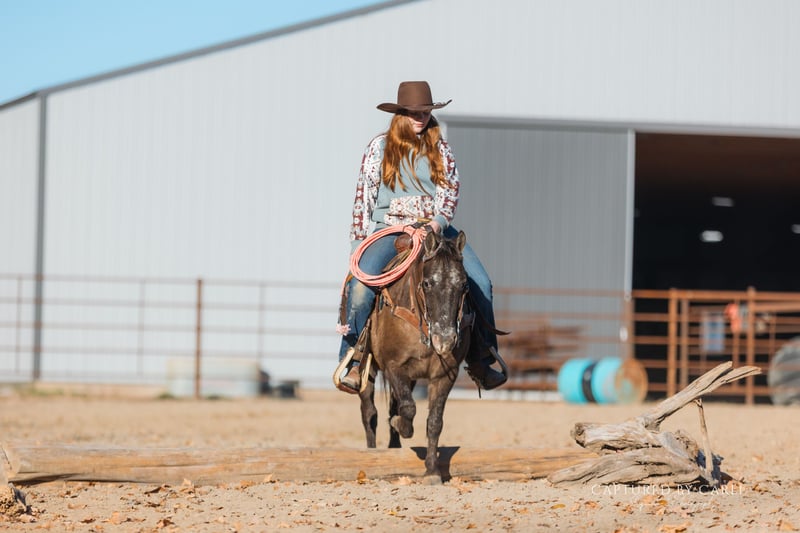🎁 𝐈𝐍 𝐓𝐈𝐌𝐄 𝐅𝐎𝐑 𝑪𝒉𝒓𝒊𝒔𝒕𝒎𝒂𝒔 🎁 Happening now thru TUESDAY | DECEMBER 9th - Available EXCLUSIVELY on Ponybid's website! For more details and to register visit: www.Ponybid.com CONSIGNOR CONTACT: Jones Family and Versatility Horses 618-535-9966 LOCATION: Lewistown, IL BREED: Quarter Pony REGISTERED: No COLOR: App HEIGHT: 48” AGE: 8 GENDER: Gelding Geronimo looks like he marched straight out of a cartoon and into real life and that’s exactly why everyone falls in love with him. This eight-year-old, 48-inch Quarter Pony has one of the most unique Appaloosa coats you’ll ever see. Kids point, adults grin, and everyone immediately asks, “What’s his story?” He’s unforgettable in all the best ways. Geronimo has been the barn celebrity since the day he arrived. His curious, charming personality makes him the pony everyone wants to pet, ride, and sneak treats to. He’s gentle enough that even the tiniest, most timid kids feel safe around him, yet he walks, trots, and lopes with the confidence and style of a full sized horse. He handles like one, too this is the kind of pony that turns kids into lifelong horse lovers. He’s been on countless trail rides, shown locally, and packed little riders in lead-line. He is trained to lay down on command, and he’s as easy-going and user-friendly as they come: catch him anywhere, clip him, load him, bathe him, shoe him he’s good for all of it. He’ll ride out in a group or head out alone without hesitation. He’s been used around a rope, dragged logs, and even roped the dummy like he’s 15 hands tall and auditioning for a ranch horse calendar. And yes he’s stout and steady enough that a small adult can climb on and enjoy him, too. (And trust me, you’ll want to.) Ponies like Geronimo don’t come around often. He’s honest, well-handled, well-trained, and has had the right kind of hands on him his whole life. He has the heart, the education, and the personality that are nearly impossible to find in a pony his size. It won’t be easy to let him go Geronimo has been a source of daily smiles, laughter, and pure joy for us. But we’re excited for the lucky kid who gets to call him theirs next. This little cartoon character has a gift for capturing hearts, and we can’t wait to see the story he writes for his next family.