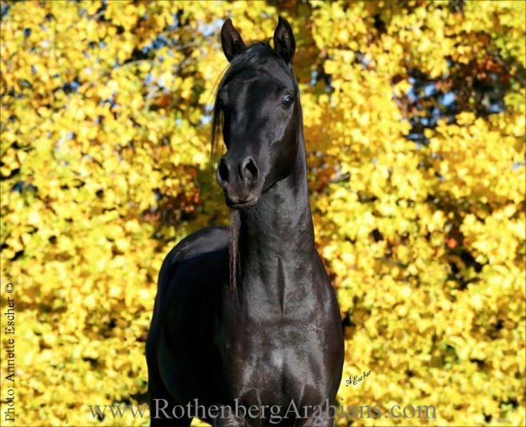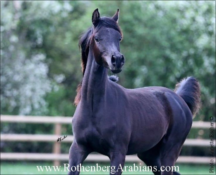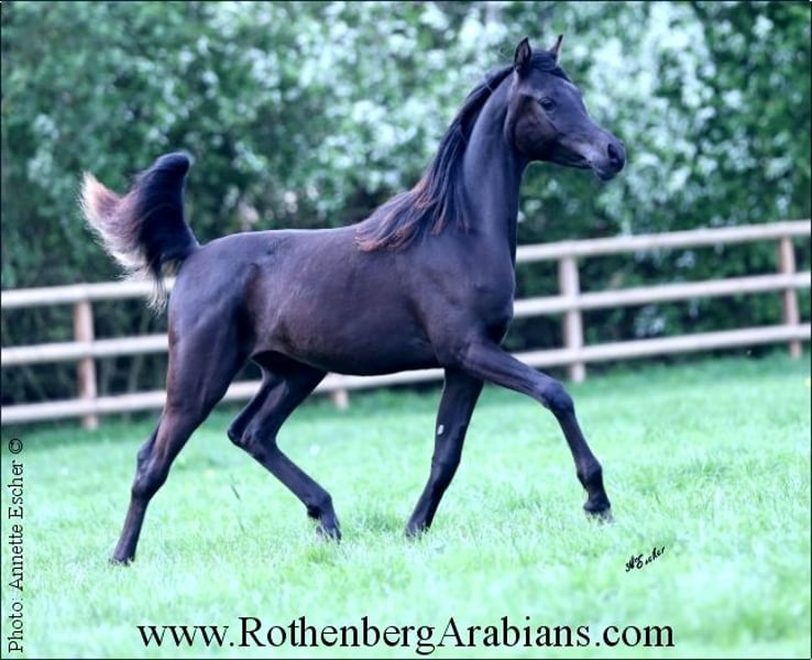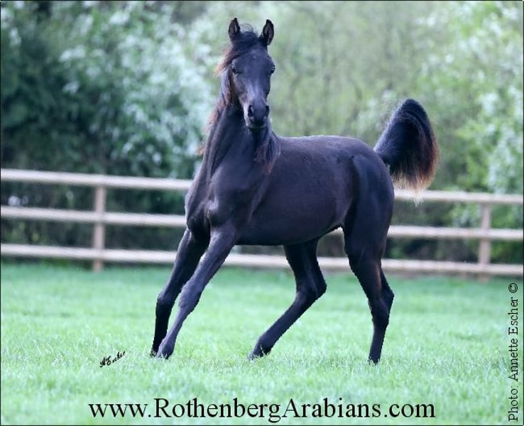 Homozygous black Straight Egyptian stallion without any white markings by black Gold Premium-stallion GR Ishad (by black Gold Premium stallion GR Nashad exp. Kuwait) out of a daughter of World-famous black show-winner GR Faleeh exp. Kuwait)! Motherline Abayyan! Exotic classic in type, fantastic body, gorgeous and super showy movements and most important a just wonderful character! First foals 2026! From time to time shipped semen in best quality available, life-foal-guarantee (if not pregnant breeding for free the following year, change of stallion mostly possible upon request) 14 additional Straight Egyptian stallions - most of them black, several homozygous without any white! Some of them standing outside for breeding, some have shipped fresh / frozen semen avaialble! World-famous stallions, several gold-premium stallions and/or winner of stallion-licensing / some big show-success / some with winning offspring worldwide! Black & grey, some homozygous! Are stallions are SCID & CA free, Breeding-fees from Euro 700,- up (depends the stallion and pedigree of the mare) - detailed breeding-conditions on request! Always offspring and breeding-stock available for purchase! Please visit us at Instagram: #RothenbergArabianStud