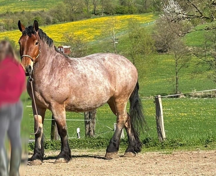 Amira is very people-oriented, affectionate, playful, and curious. She loves walks and is completely fearless during them – tractors, flashing lights, sirens, or honking trucks are no problem. She can be left alone and also go for walks by herself. Amira is familiar with groundwork and lunging, but she enjoys walks much more. She is motivated to learn but requires clear handling due to her size and inexperience. She has not been ridden, but she is accustomed to rider weight in the arena and on trails. We have done very little with her in the past year, so I am offering her as a raw horse. With proper training, she will make a wonderful leisure partner for rides or even a carriage horse. Farrier work and loading onto a trailer work with a bit of patience. Currently, Amira is kept in a paddock with 24/7 turnout during the summer right next to the stable; she is also familiar with box stall housing. In the herd, she holds a middle position. Important note!! – Eczema horse Amira developed a severe insect allergy (summer eczema) two years ago. Despite various measures, an optimal solution has not yet been found. She is not fully protected from mosquitoes in her paddock. A different housing situation or a region with fewer insects would be beneficial. In winter, she has no issues. An allergy test and blood work from 2024 are available. Place before price – I value a loving and suitable home for Amira above all. If the environment is right, we will certainly agree on a fair price. P.S.: In the photos, her mane and tail appear quite short and thin, which is due to the summer eczema and itching.