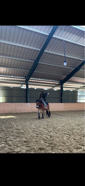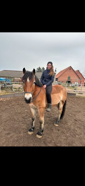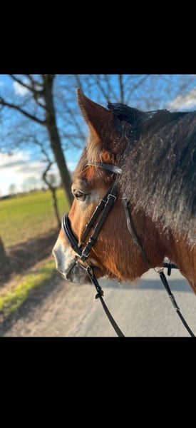 Aus familiären, belastenden Gründen muss ich mich schweren Herzens von meinem sportlichen Kaltblut trennen. -wallach -6 Jahre alt -1.68 groß -sportlich -kuschelbär Artos musste leider schon den ein oder anderen Umzug/Besitzwechsel mitmachen und ist bei mir selbst erst 3 Monate Zuhause (weshalb ich ihn wieder abgebe, können wir gern privat besprechen). Er ist eine wirklich reine Seele und macht unglaublich viel Freude. Er hat Spaß an der Arbeit und ist immer stets motiviert. Er wird Dressurmäßig gearbeitet, im springen nicht weiter gefördert, er zieht gut an, ist jedoch wohl kein Springpferd *lach*. Ein kleines Kreuz oder einen kleinen Steil, haben wir aber schon gemeistert. Im Gelände benötigt er einen erfahrenen und ihm Sicherheit vermittelnden Reiter, weil er manchmal ein kleiner Schisser ist. Er macht das jedoch mit 2. Pferd sehr souverän und wird auch nicht blöd dabei. Das ist eine Sache des Trainings und der Gewohnheit. Macht aber keinen Unsinn und wird auch nicht Kopflos. Er bereitet mir sehr viel Freude und ich hänge wirklich mit viel Herz an ihm. Er lernt schnell und ist vom reiterlichen Gefühl her auch nicht sehr massiv. Gern berichte ich persönlich noch einmal mehr von ihm oder schicke Videos oder Fotos rüber. Zubehör könnte er gegen Aufpreis mit bekommen. Er hat einen WOW Sattel. Er kennt und sollte bestenfalls in Offenstallhaltung und viel Bewegung und Spielkumpels zur Verfügung haben. Er ist nicht extrem ranghoch, aber definitiv auch nicht rangniedrig.