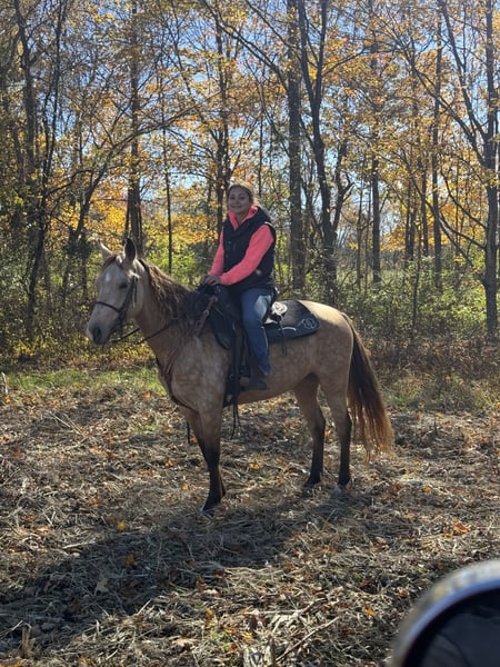 " AVAILABLE ON ONLINE HORSE AUCTION AT www.MagicHorseAuction.com BIDDING OPEN NOW thru TUESDAY | JANUARY 20TH! BUY IT NOW AVAILABLE! *Final price will be determined on auction site* CONSIGNOR CONTACT INFO:Zach Brandenburg # 513-508-3684 LOCATION: Moscow Ohio " Ivory is an absolutely stunning buckskin mare that is coming 5 years old and stands 14.2 hands tall. This mare is always turning heads no matter where we go with her, Ivory has an incredibly smooth gait that does not move you in the saddle. She walks when asked and has a smooth canter that’s very easy to sit. Ivory goes where you point her without hesitation and always aims to please. Ivory isn’t a deadhead but she is a fun horse to ride and gives you her all every trip out. She’s peaceful to be around and loves to petted and groomed. She’s great for the farrier and all and all is just a nice horse to have around.