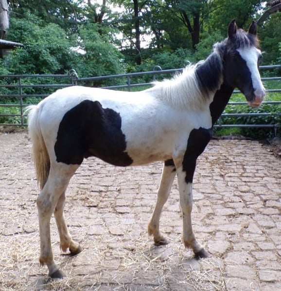 Bobby is a friendly young guy, his mother is a Rocky Mountain mare, and his father is a Paso Fino stallion. He has papers from the ZfdP as a Pinto. However, I believe that since he resembles his mother in appearance and movement, he has a good chance of being certified as a Spotted Mountain Horse and entering breeding.