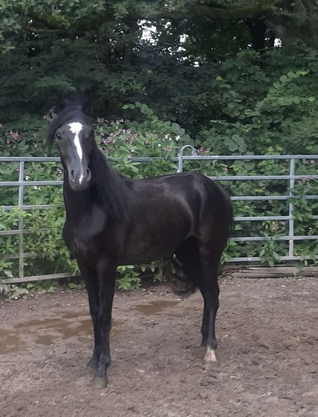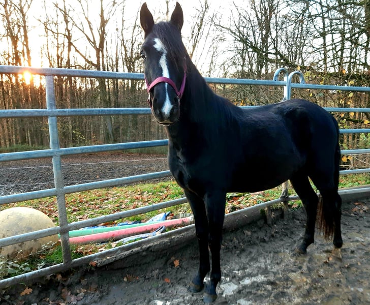 Black Stallion – Rocky Mountain Horse x Paso Fino A beautiful, tall black stallion with a harmonious build and elegant presence. He comes from a rare and exciting crossbreeding with excellent lineage: Rocky Mountain Horse, known for its calm demeanor, gentle nature, and rider comfort, and Paso Fino, valued for its elegance, eagerness to learn, and fine responsiveness. He is friendly, curious, very calm, and well-balanced. Characteristically quite tranquil, typical of the Rocky Mountain type. In movement, he appears relaxed and well-coordinated — with an elegant, natural gait and a lot of tact, providing a solid foundation for further training. Ideal for riders seeking a reliable, versatile gaited and leisure horse. The second horse in the YouTube video is his grandfather Zorro (black with a star).