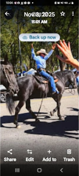 Very calm and very gentle doesn't bother anything with the traffic stands quietly loads perfect very quiet in the trailer easy to work with easy to do his feet willing to trade for a smaller Rocky Mountain he's just too tall for me I am around a hundred pounds and only 5 foot or so tall need a smaller Rocky Mountain horse