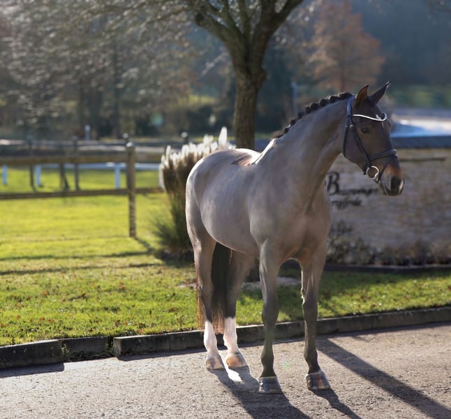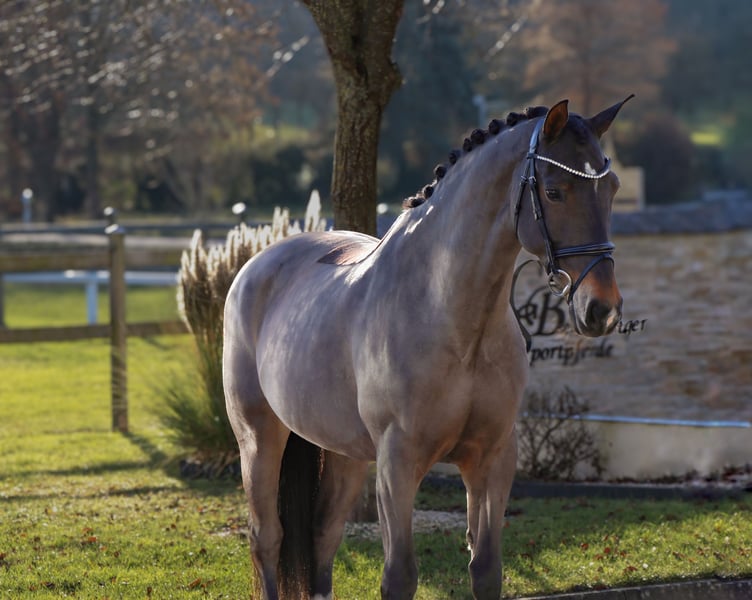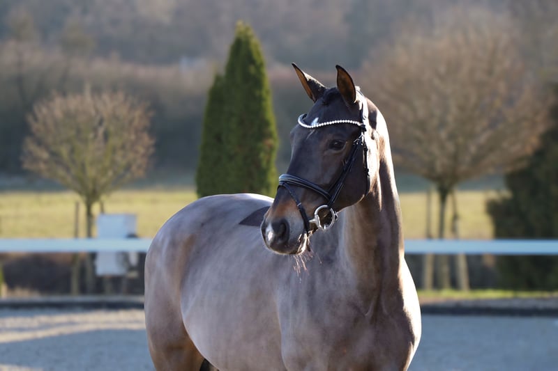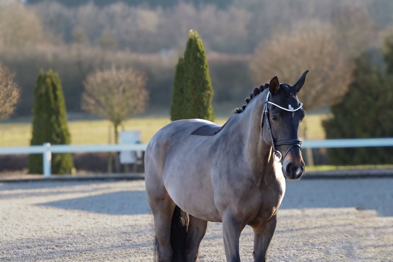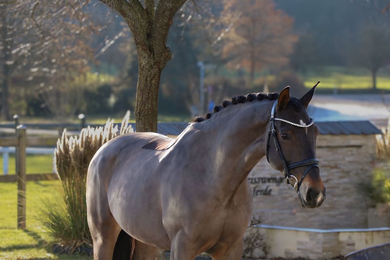 Sepha is a wonderful mare suitable for the whole family. She is very well-behaved and gentle in handling, easy for everyone to manage, and completely free of stallion-like tendencies. She can be approached from all sides and by anyone, making her an excellent choice for children as well. Under saddle, she impresses with her calm demeanor. Even in unfamiliar environments, she remains focused on the rider and consistently brings joy to her rider. Sepha has three very good and comfortable basic gaits and is well-suited both in terms of temperament and rideability for entering the competitive arena, whether in dressage or jumping, and for riders to develop their skills. She is trained to solid level L, can perform both flying changes, and displays a great willingness to collect. Thanks to her high engagement and clever nature, she learns new things quickly and can recall previously learned exercises at any time. She moves easily into contact, providing a very pleasant riding experience and a high level of confidence. In jumping, the mare also shows a lot of enthusiasm. She crosses all types of fences calmly and reliably, making her the perfect partner for pole work, gymnastic exercises, jumping lessons, and small competitions. In the field, Sepha is brave and fearless. She behaves well both in groups and when ridden alone from the pasture, demonstrating confidence and calmness in all three basic gaits. She also handles road traffic without issues. We can easily imagine this open-minded mare as an excellent family horse. Any ambitious rider seeking both high-level competition and relaxed trail riding will find a perfect partner in her. PLEASE BE SURE TO WATCH THE ENTIRE VIDEO, including the field and jumping scenes. Organizing transport to her new home is no problem! Important notes: • The height measurements are approximate and not precisely taken • All descriptions are subjective assessments by the seller and do not constitute guaranteed properties Current X-rays without findings are available, as well as a flawless clinical examination. If you are interested or have further questions, please feel free to contact us anytime by phone at +49 1514 0555583. We are available on weekends and public holidays. A trial ride is always possible.