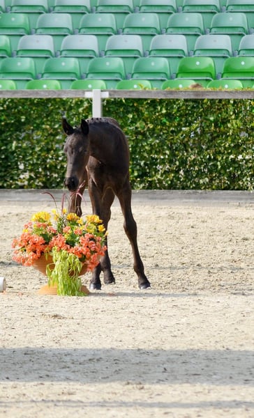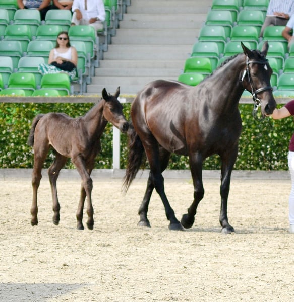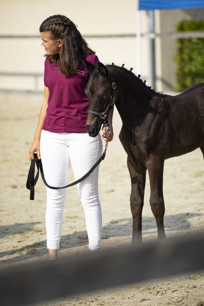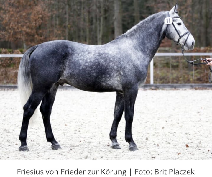 Unser diesjähriger Youngster FIERO begeistert durch sein Erscheinungsbild, seine Ausstrahlung und seinen Charakter gleichermaßen. Er wurde im Typ mit 9,0 bewertet und zum Fohlenchampionat zugelassen, das er – trotz seines jungen Alters – mit Bravour bestanden hat. Fiero zeigt sich bei uns als äußerst verschmustes, ausgeglichenes und lernfreudiges Fohlen. Er beherrscht bereits das Fohlen-ABC, läuft sicher an der Hand, steht ruhig angebunden – auch ohne seine Mutter – und zeigt sich beim Schmied absolut brav. Auch das Verladen im Hänger meistert er mit Bravour und steht selbst auf längeren Strecken ruhig und entspannt neben seiner Mutter. ➡️ Abgabe nach dem Absetzen ab Dezember 2025. Herkunft & Qualität Vater: Friesius v. Frieder Ein typvoller, blutgeprägter Hengst aus der seltenen F-Linie der Normann-Abstammung, die für Adel, Ausdruck und Leistungsbereitschaft steht. Friesius absolvierte 2021 seine 50-Tage-Leistungsprüfung mit der Endnote 8,01 und überzeugt durch Leichtfüßigkeit, Aufrichtung und hervorragende Rittigkeit. Seine Abstammung vereint wertvolles Leistungserbe mit modernem Typ und außergewöhnlicher Präsenz. Muttervater: Loriot Ein Leistungshengst durch und durch – Bundeschampion 2019, Vize-Bundeschampion 2021 und Finalist der Weltmeisterschaften der jungen Fahrpferde. Er legte eine hervorragende Hengstleistungsprüfung mit 8,44 ab und zählt zu den bedeutendsten Vererbern der Rasse. Mit mehreren gekörten Söhnen, darunter Kör- und HLP-Sieger, sichert Loriot wertvolle Genetik und Typstärke für die Zukunft. Die Mutter, eine Verbandsprämienanwärterin, kann auf dem Hof besichtigt werden. Sie ist solide geritten und gefahren und wird im kommenden Jahr ihre Prüfung ablegen. Charakter & Entwicklung Fiero besticht durch sein ruhiges, ausgeglichenes Wesen und seine hohe Lernbereitschaft. Er ist ein Fohlen, das mit seiner Menschenbezogenheit und Gelassenheit jeden Tag Freude bereitet – ideal für Züchter, Fahrer oder Liebhaber des Schweren Warmbluts, die Wert auf Qualität und Charakter legen. Wichtiger Hinweis Dies ist kein Notverkauf. Wir möchten lediglich einem Liebhaber oder Züchter die Gelegenheit bieten, ein besonders vielversprechendes Hengstfohlen zu einem fairen Preis zu erwerben. Sollte sich nicht das passende Zuhause finden, bleibt Fiero selbstverständlich bei uns, wird altersgerecht gefördert und weiter ausgebildet – entsprechend wird dann auch sein Wert steigen. Kontakt: Romantikhof Seitenhain 0152 04188729 (gern per Nachricht oder Telefon) Besichtigungen nach Absprache jederzeit möglich. Aktuelle Bilder folgen in Kürze.
