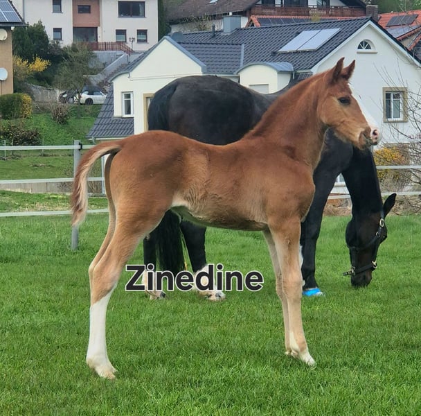 Edel gezogenes Hengstfohlen von Zinedine – aus Mutter mit zwei gekörten Söhnen Geboren: 14. Februar 2026 Hengstfohlen Vater: Zinedine Mutter Country Lady (Conceicao x Pilot).Leistungsstarke Zuchtstute, bereits zwei gekörte Hengste gestellt Farbe: Fuchs mit markanter Blesse Standort: Borchen (NRW) PLZ 33178 Preis: 10.000 inklusive MwSt Dieses außergewöhnlich typvolle Hengstfohlen überzeugt durch seine moderne, sportliche Linie und seine hervorragende genetische Absicherung. Der Vater Zinedine steht für Vermögen, Rittigkeit und Qualität. Die Mutterlinie ist besonders wertvoll: Zwei gekörte Hengste aus derselben Stute sprechen für Vererbungssicherheit und Zuchtpotenzial. Charakter & Auftreten - sehr menschenbezogen und freundlich - neugierig, klar im Kopf und unkompliziert - zeigt bereits schöne Bewegungen und gute Balance Besichtigung Besichtigung nach Absprache jederzeit möglich. Transport kann organisiert werden. https://www.instagram.com/pferdezucht_weritz?igsh=cHJ6anc3NHQ2aDlx&utm_source=ig_contact_invite https://www.instagram.com/reel/DVVQWfEiO17/?igsh=a2c1OHI4ZGNncmRt
