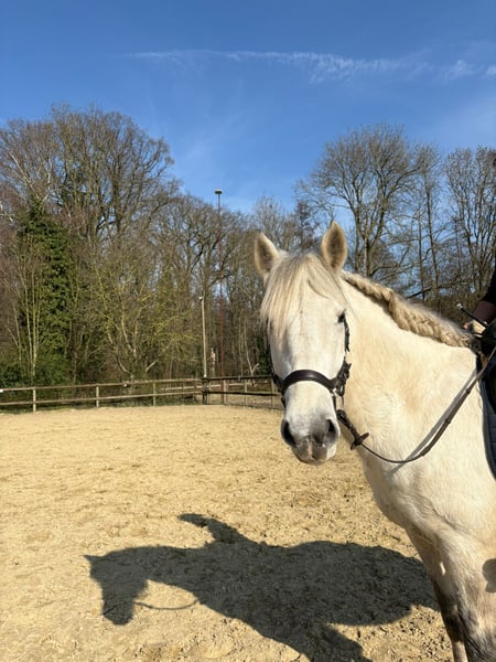 Heaven – a gentle, versatile mare seeking her forever home Heaven is a calm, well-balanced mare with a sensitive and honest character. She is looking for a confident, intuitive rider who enjoys a true partnership with their horse. Once Heaven has gained trust, she proves to be motivated, eager to work, and very reliable. She is not suitable for beginners but impresses with her rideability and pleasant demeanor. Training Heaven has been trained in various disciplines and possesses a solid foundation: - Dressage work with leg-yields and traverses - Short reining and flying changes - Cavaletti work and small jumps - Comfortable to ride even without a saddle - Motivated during ground work Trail Riding In the field, she remains calm and relaxed but also enjoys a lively group canter. Character In daily handling, Heaven is friendly and relaxed. Like many mares, she knows exactly what she wants – especially cuddling sessions and treats are highly appreciated. Stabling Currently, Heaven lives in a paddock with a small herd of two Shetland ponies and is well socialized. She is familiar with both pasture and box stall keeping, with regular turnout. Health - No eczema - Regularly vaccinated and dewormed - Barefoot - Well-behaved at the blacksmith - Has not been ill in recent years For Heaven, we are looking for a loving forever home where she can continue to thrive and be appreciated. Dealers and riding schools are excluded.