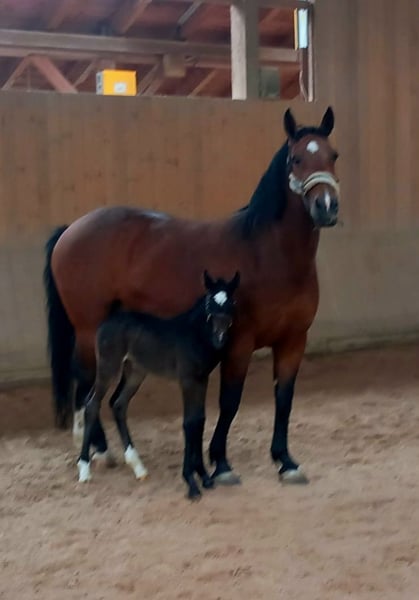 Namika überzeugte schon als Fohlen und wurde Reservesiegerin beim Fohlenchampionat. Sie ist eingetragen Staatsprämienstute und erhielt die Noten 9,0 für Rasse und Geschlechtstyp sowie 8,5 für ihren Trab. Ihre Zuchtstutenprüfung absolvierte sie mit dem Gesamtergebnis von 7,74. Dabei beeindruckte sie beim 21 Tage Training mit ihrer Umgänglichkeit (9,0), Leistungsfähigkeit (9,0), Zugmanier (9,0) und Arbeitswilligkeit (9,0). Namika wird bei uns derzeit freizeitmäßig geritten. Gefahren wurde sie seit der Leistungsprüfung nicht mehr. Namika wurde am 1.5.2025 mit Centurio gedeckt und ist tragend. Namika hatte bereits ein braunes Hengstfohlen und ein schwarzes Stutfohlen. Sie wird wegen Bestandsverkleinerung verkauft.