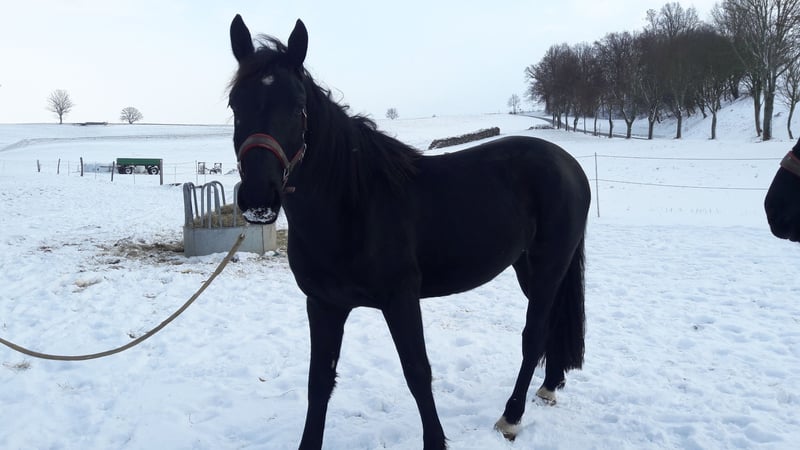 Olga ist eine 2 1/2 jährige schwere Warmblutstute, die bei uns im familiären und altersgemischten Herdenverband aufwächst. Sie kennt führen, anbinden, Hufe geben und Anhänger fahren. Mutter: Stattsprämienstute** ,HM,PrS*,LP und Mutter vom gekörten Hengst: Efeu Vater:Cadett Royal - Muttervater: Geron, Egner Stockmaß zur Zeit ca. 157cm, Endmaß ca. 160cm Geboren 2023 Ausbildungsstand: roh Olga ist kerngesund, Impfstatus aktuell Ihre Zukunft sehe ich in der Zucht (Mutter Hengstmutter), als Freizeit- bzw. Gespannpferd Gern telefonisch oder via WhatsApp melden unter 0172 3795327