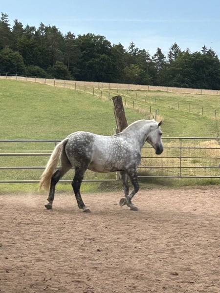 Eleganter Apfelschimmel-Wallach, geboren im Jahr 2016, sucht neuen Besitzer. Mit einem Stockmaß von 163 cm verfügt dieser schwere Warmblut- Wallach über eine beeindruckende Größe und eine elegante Erscheinung. Er ist ein äußerst zuverlässiger Freizeitpartner, der durch seine angenehme Art und sein ausgeglichenes Temperament besticht. Der Wallach ist gut geritten und zeigt sich im Umgang stets freundlich und gelassen. Seine solide Grundausbildung macht ihn zu einem vielseitigen Begleiter für entspannte Ausritte und gemeinsame Freizeitaktivitäten. Ein Pferd, das sowohl durch sein Erscheinungsbild als auch durch seine Charakterstärke überzeugt – perfekt für Reiter, die einen verlässlichen Partner für die Freizeit suchen. Zur Zeit steht er tagsüber auf der Koppel und Abends in der Box. Für reine Boxenhaltung ist er nicht geeignet.