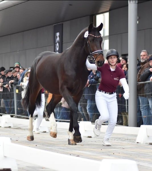 On behalf of the breeder, Lexters Leif, a heavy warmblood foal born in 2023, is being offered for sale. The charming dark bay stands at 16.1 hh and has a cannon bone circumference of 24 cm. He participated in the stallion days in November in Moritzburg, so he is currently still a stallion, but shows no stallion-like behavior. Leif has an excellent temperament, is completely fearless, and enjoys working. He impresses daily with his friendly nature, rarely becomes nervous, and therefore offers versatile potential for various disciplines. Thanks to his very good walk, a rhythmic trot, and a beautiful uphill canter, he would be an ideal partner for ambitious riders or drivers in the higher-level recreational riding sector. Due to his good musculature from preparing for stallion selection and the stallion days in Moritzburg, we tested him with rider weight. He proved to be well-behaved and very easy to handle. Please feel free to contact me for further information or to arrange a viewing.