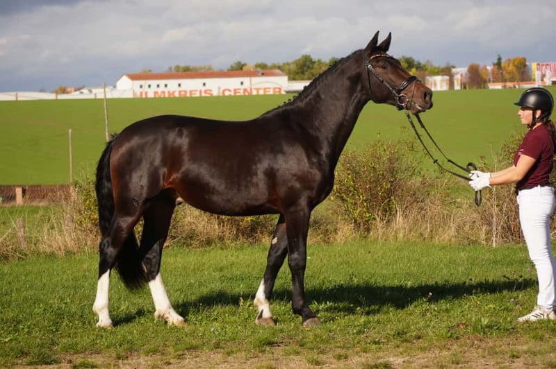 Im Auftrag der Züchterin wird der Schwere Warmblüter Lexters Leif, geb. 2023 vermittelt. Der charmante dunkelbraune hat ein Stockmaß von 163 cm und einen Röhrbeinumfang von 24 cm. Er war Teilnehmer der Hengsttage im November in Moritzburg, daher ist er aktuell noch Hengst, zeigt aber keinerlei Hengstmanieren. Leif hat einen super Charakter, ist total unerschrocken und macht Freude bei der Arbeit. Er begeistert täglich im Umgang durch sein angenehmes Wesen, wird selten hektisch und bietet daher vielseitige Einsatzmöglichkeiten. Aufgrund seines sehr guten Schrittes, taktvollen Trabes und seiner schönen Bergaufgaloppade wäre er der ideale Partner für ambitionierte Reiter oder auf Fahrer für den gehobenen Freizeitbereich. Durch seine gute Bemuskelung von der Vorbereitung für die Hengstvorauswahl, sowie die Hengsttage in Moritzburg testeten wir ihn mit Reitergewicht an. Dort zeigt er sich brav und sehr unkompliziert. Seine Mutter ist die Staatsprämienstute Eowin von Epilog. Auch ihre anderen Nachkommen überzeugen mit Kopfklarheit. Bei Interesse stehe ich gerne für weitere Informationen und eine Besichtigung zur Verfügung
