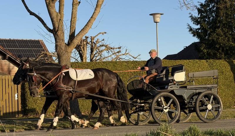 Hier sehen Sie ein Gespann ( Stute rechts Wallach links) das sehr gelassen und vernünftig ist. Beide Pferde sind ein ,- zweispännig gefahren, sowie im Gelände und in der Halle geritten . Beide Pferde können auf Wunsch auch einzeln erworben werden.