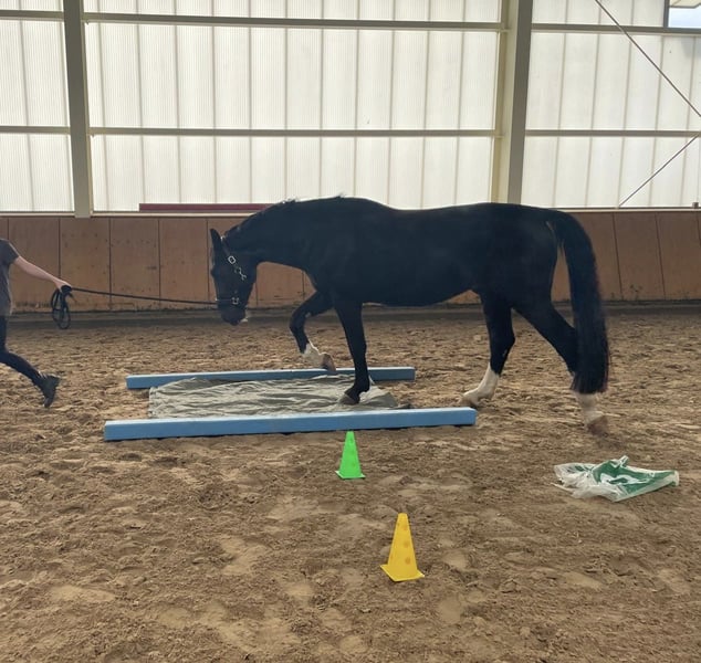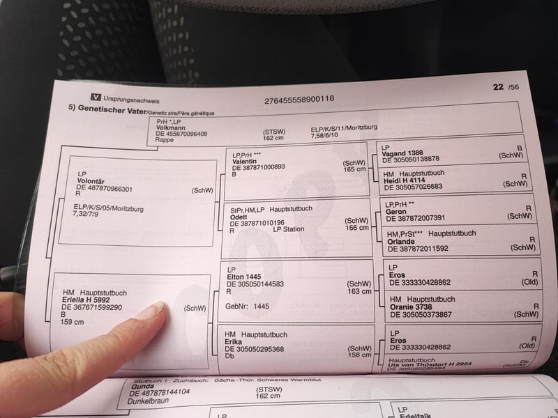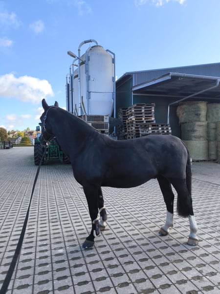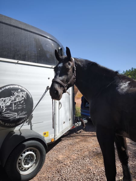 Hallo, ich verkaufe hier meinen 2018 geborenen schweren Warmblutwallach Valentino, auch liebevoll Eselchen genannt. Valentino ist ein Pferd was immer neugierig auf neue Dinge ist und gern Freude an der Arbeit hat. Er benötigt eine konsequente Führung, da ihm sonst schnell, viel Quatsch einfällt. Regelmäßige und abwechslungsreiche Arbeit, wie Dressurarbeit, Springen und auch mal mit dem Hänger irgendwo hinfahren und Ausreiten gehen, gefällt ihm sehr. Er wurde vierjährig angefangen einzufahren, dies wurde aber meinerseits nicht weiter gefördert, ich denke aber das ihm die Arbeit auch viel Freude bereiten würde. Er setzt neu gelernte Dinge schnell um und ist immer gewillt alles richtig zu machen. Er läuft mit einem entsprechenden Reiter solide auf A Niveau und beherrscht fliegende Wechsel. Das Springen macht ihm sehr viel Freude, hier springt er einen E Parcours oder macht auch mal gern Stangengymnastik. In letzter Zeit waren wir selten im Gelände, da wird leider zum Ausreiten immer weiter weg fahren müssen. Ich würde mir für ihn einen Platz wünschen, wo er täglich weiter gefördert wird, viel mit anderen Artgenossen raus kommt und man ihn einfach lieb hat. Ich verkaufe ihn nicht aus der Not heraus, sondern einfach, weil ich nicht mehr die nötige Zeit durch Arbeit und Studium finde und er ein Zuhause verdient hat, wo er täglich betüddelt und gefordert wird. Valentino ist sehr ranghoch und war bis über sein viertes Lebensjahr hinaus Hengst. Bei uns steht er mit einem Kumpelwallach täglich draußen und Nachts in der Box. Stuten oder andere Wallache die nebenan stehen, sind für ihn kein Problem, größeren Herdenkonstellationen überfordern ihn aber. Allesamt ist Valentino ein Pferd mit dem man sehr viel Freude habe kann und der jeden Spaß gern mitmacht. Er wird nicht an Händler oder Schulbetriebe verkauft! Für ein Probereiten berechne ich 20 €, was im Falle eines Kaufs, verrechnet wird.