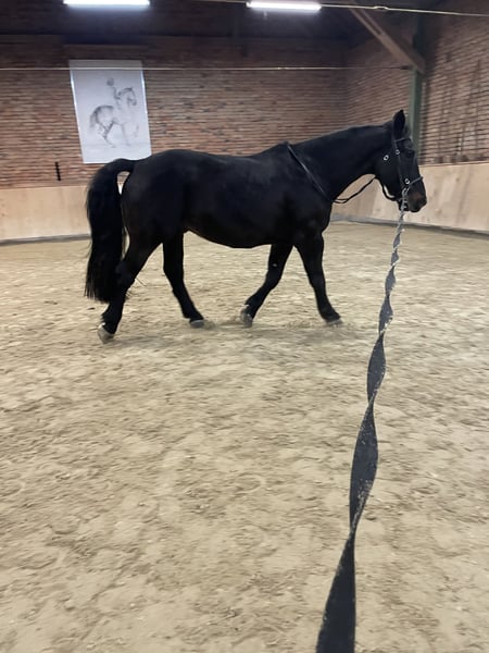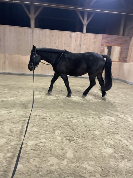 With a heavy heart, I am parting with my Raban. He was quite wild until he was five years old, but since then he has been with me, ridden, and professionally trained. Raban behaves very well in the dressage arena, showing motivation and focus. He can be ridden in all three gaits, masters all lateral movements, and moves very pleasantly "through the back." He responds very delicately to rider aids and wants to do everything correctly. However, Raban's favorite activity is hacking out in the field. In a group, he remains well-behaved and confident in every situation he encounters. Since late summer, he has also been more frequently ridden alone, remaining completely manageable in all gaits. Here, he can truly relax and enjoy himself. Overall, Raban is a very calm fellow. He is not a gaited or athletic horse, but stable, never ill, and simply very sweet. He loves cuddles, children, grooming, etc. No bad habits. Absolutely sound and farrier-friendly; can be loaded by a single person. Since I spend a lot of time in the field, Raban is currently four-shod but has excellent hooves and could also go barefoot. He is the rock in the group, the leader and at the same time a confident, calm presence. He is used to daily turnout, preferably in an active or open stable environment. He is not suitable for pure box stall housing. Teeth checked annually, vaccinated, dewormed. Raban is very dear to me and will only be rehomed if the fit is right.