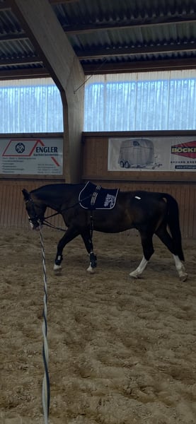 Liebe Pferdefreunde, Schweren Herzens habe ich mich dazu entschieden, meinen wundervollen Wallach in beste Hände abzugeben, da ich ihm aufgrund meiner Ausbildung zeitlich und auch finanziell leider nicht mehr gerecht werden kann. Dieser Schritt fällt mir alles andere als leicht, weshalb ich für ihn ausschließlich ein liebevolles Zuhause suche, in dem er weiterhin gefördert und wertgeschätzt wird. Er ist ein 9-jähriges sächsisch-thüringisches Schweres Warmblut (geb. am 27.03.), mit einem Stockmaß von ca. 1,65 m und einer sehr guten Abstammung. Optisch ist er ein absoluter Blickfang – mit seinen vier weißen Beinen und der markanten weißen Blässe zieht er alle Blicke auf sich. Charakterlich ist er ein echtes Herzenspferd: sehr anhänglich, verschmust und einfach nur zum Liebhaben. Er hat eine ruhige, ausgeglichene Art und ist absolut zuverlässig – ein Pferd, auf das man sich immer verlassen kann. Ich hatte mit ihm nie Probleme, weder im Umgang noch unter dem Sattel. Er liebt es, Zeit mit seinem Menschen zu verbringen, genießt jede Streicheleinheit und blüht richtig auf, wenn man sich intensiv mit ihm beschäftigt. Er ist sehr lernwillig, intelligent und arbeitet motiviert mit. Neue Lektionen versteht er schnell und gibt sich stets größte Mühe, alles richtig zu machen. Aktuell befindet er sich auf einem guten Ausbildungsstand der Klasse L in der Dressur. Zu seinen Stärken zählen seine schönen, klaren Grundgangarten sowie Lektionen wie Seitengänge, angalloppieren aus dem Schritt und sogar aus dem Stand. Zudem haben wir bereits mit Trabtraversalen begonnen und arbeiten aktuell an fliegenden Galoppwechseln. Auch im Gelände ist er ein absolut verlässlicher Partner. Ich bin regelmäßig alleine mit ihm ausreiten gegangen, was stets problemlos und entspannt verlief. Er zeigt sich dabei aufmerksam, aber niemals unsicher oder schwierig. Turniererfahrung ist vorhanden – wir sind gelegentlich aus Spaß gestartet und konnten bereits Platzierungen in der Klasse E erreichen. Aufgrund der eher seltenen Turnierteilnahme ist hier definitiv noch Luft nach oben. Gesundheitlich steht er sehr gut da: Er ist fit, seine Zähne wurden vor kurzem gemacht und aktuell ist er vorne beschlagen. Ich wünsche mir für ihn ein Zuhause bei Menschen, die ihm die Zeit, Liebe und Förderung geben können, die er verdient. Er ist kein „Notverkauf“, sondern wird nur in allerbeste Hände abgegeben. Ein Kennenlernen ist jederzeit nach Absprache möglich. Bei ernsthaftem Interesse kann er selbstverständlich auch Probe geritten werden.