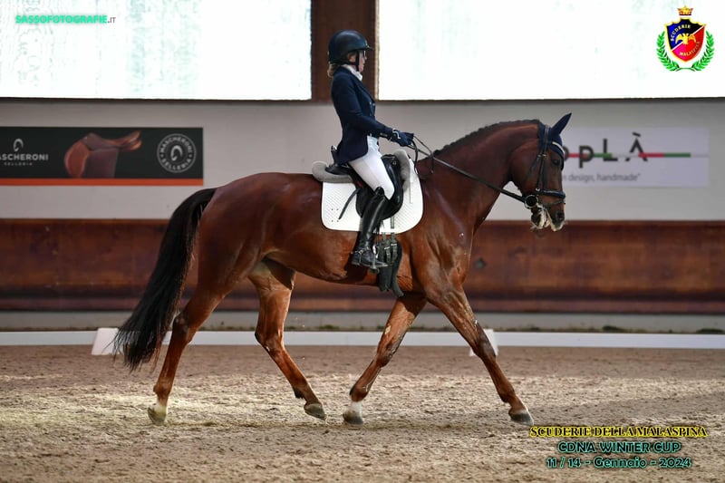 Sella Italiana | Cavalla | *2014 | circa 1,78m ⚜️ Johnson– Wordly– Donnerhall⚜️ Questa splendida figlia di Johnson, dalle gambe lunghe ed elegante, colpisce per la sua presenza notevole, le tre buone andature. 👉 Ha costantemente dimostrato un comportamento esemplare e una forte propensione all'apprendimento. 👉 Già classificata in gare di dressage di livello E F, con una solida base per un ulteriore sviluppo atletico. 👉 Grazie al suo carattere onesto ed equilibrato, non è solo interessante per i cavalieri di dressage piu ambiziosi, ma anche una compagna affidabile per i cavalieri meno esperti o più timidi. Il trasporto e le passeggiate in campagna non sono affatto un problema; È abituata a stare quotidianamente in paddock ed è molto facile da gestire. La cavalla è stata acquistata all'età di tre anni e da allora è stata addestrata professionalmente. Luogo: Milano 🥕🥕 Per ulteriori informazioni, si prega di chiamare il numero: +3332577134