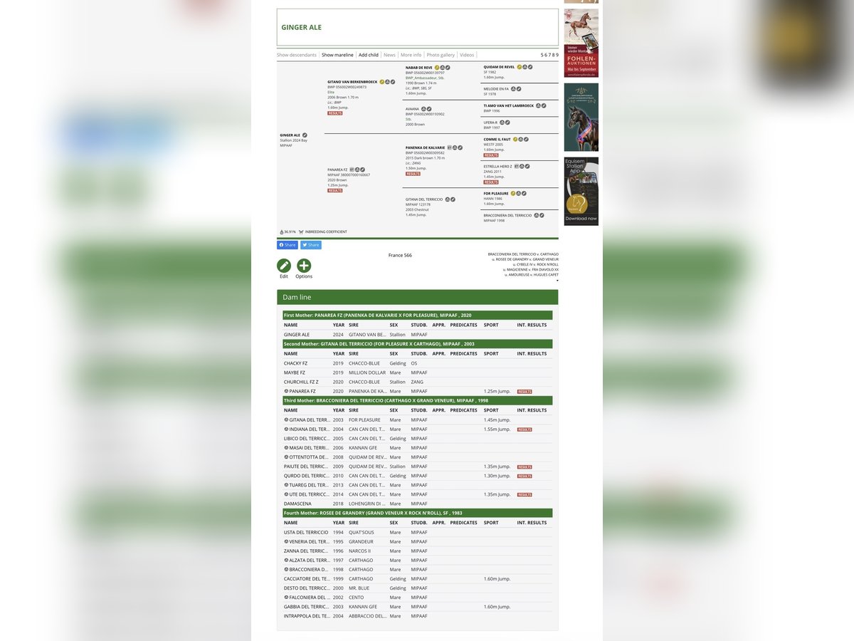 Puledro stallone di 2 anni figlio di Gitano, vincitore con Juan Carlos Garcia in gare da 160, la mamma Panarea fz vincitrice quest’anno in gare internazionali dei 6 anni. Cavallo di ottima indole e grossa struttura.