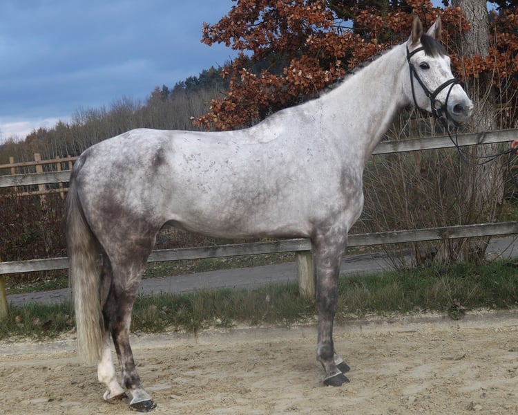 Coco ist ein vermögend und vorsichtig springender Wallach, der sich sehr zuverlässig zeigt und alles richtig machen will. 5 und 6 jährig wurde er in Italien von einer jungen Reiterin A und L erfolgreich vorgestellt - in unserem Stall ist er nun für die Klasse M gereift. Der Wallach ist freundlich im Umgang, gesund und gut ausgebildet. Er eignet sich sowohl für ambitionierte Reiter, die ihre Springfähigkeiten weiterentwickeln möchten, als auch für Reiter, die ein zuverlässiges und charakterstarkes Pferd suchen. Wir freuen uns auf Ihr Interesse